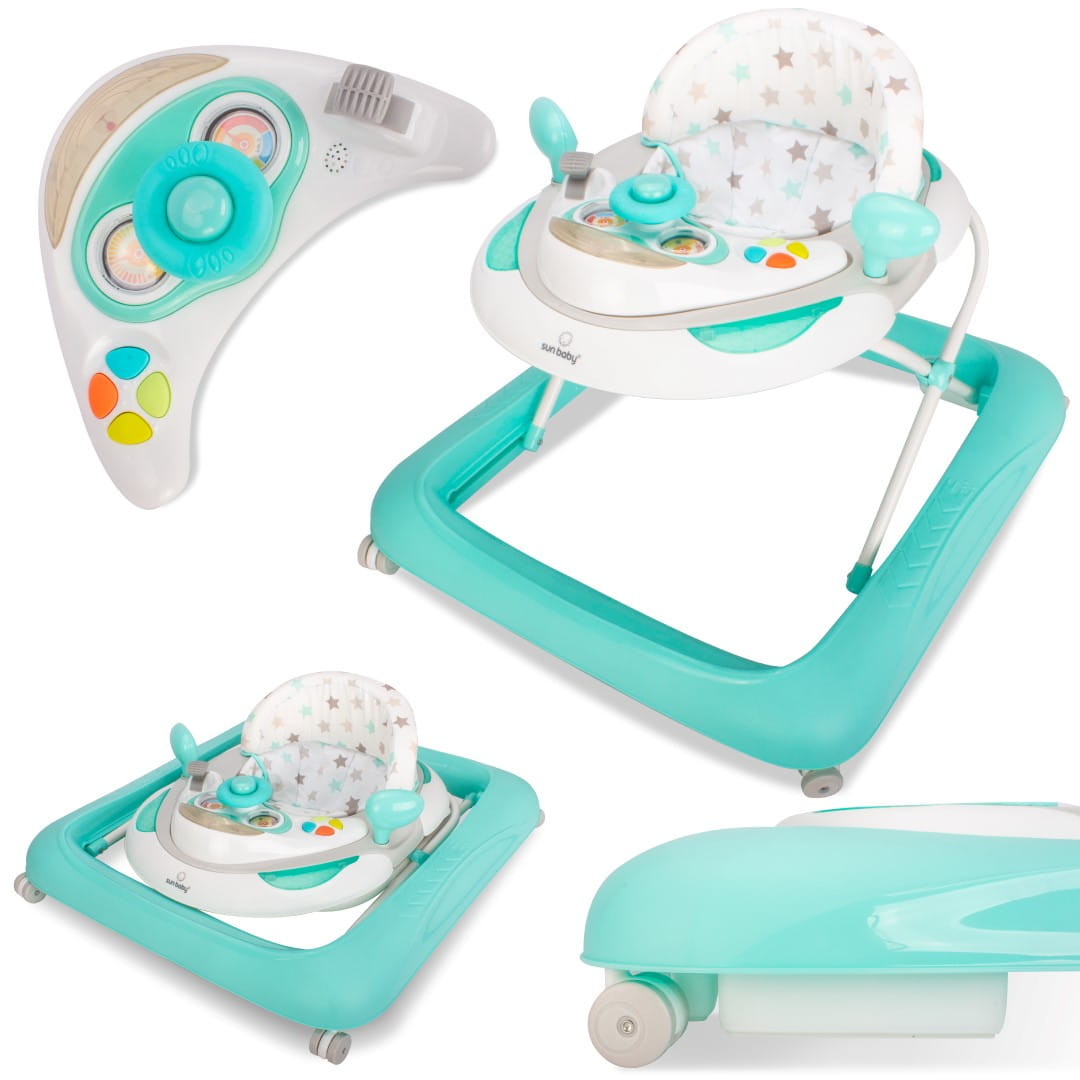Chodzik dla dzieci interaktywny do nauki chodzenia regulacja wysokości kierownica stopery mięta gwiazdki