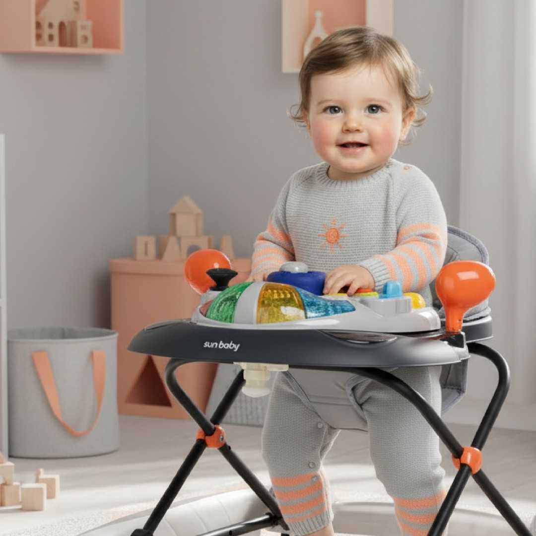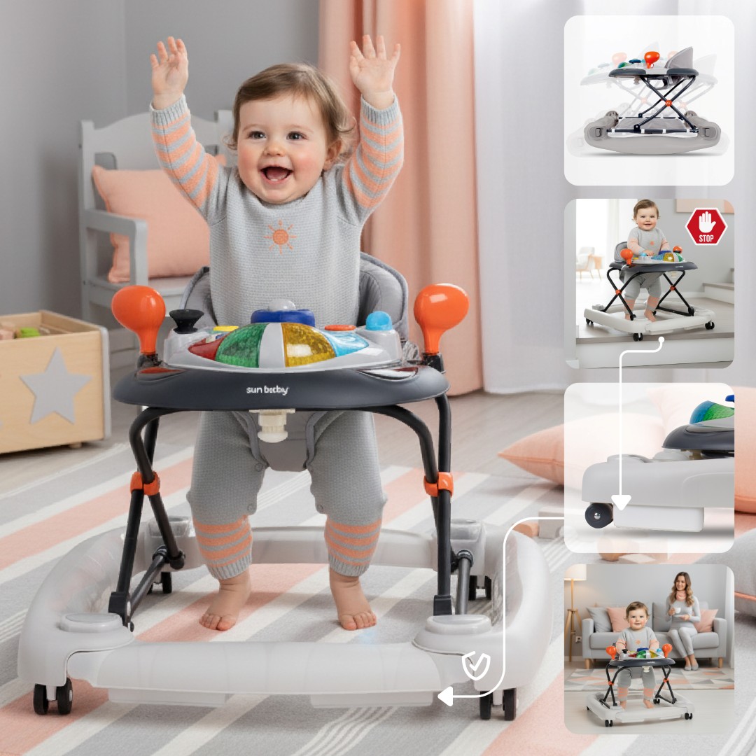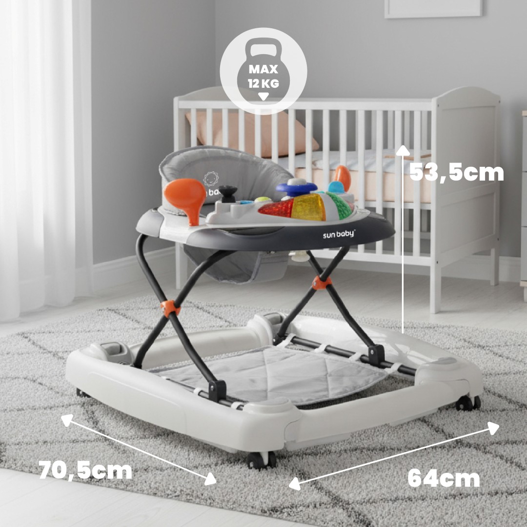 Sun Baby Interaktywny Chodzik dla dziecka kołyska z kierownicą szary