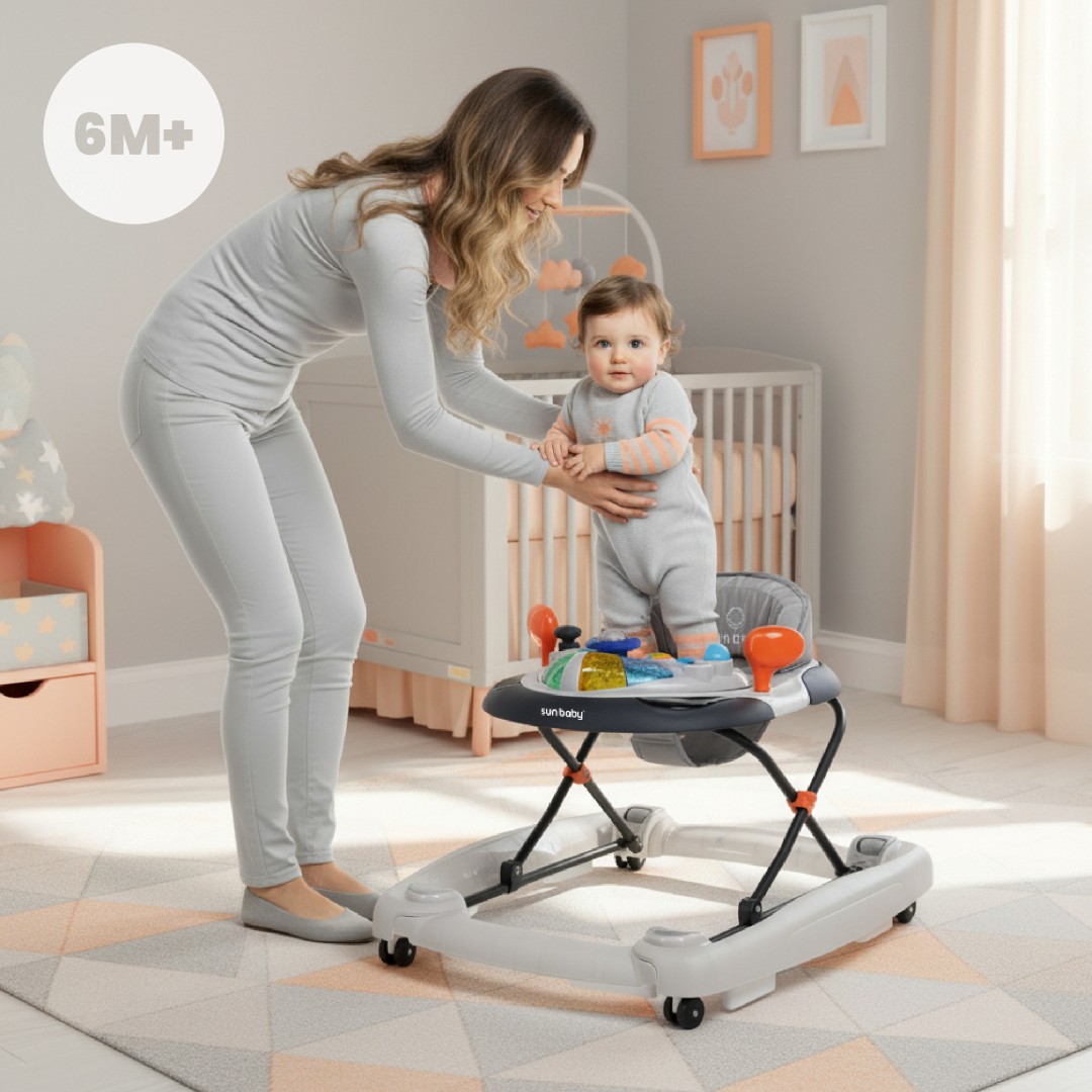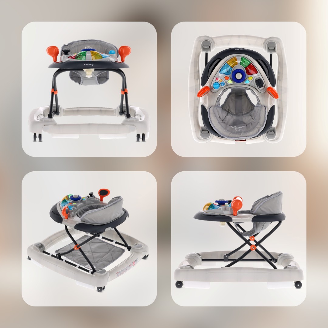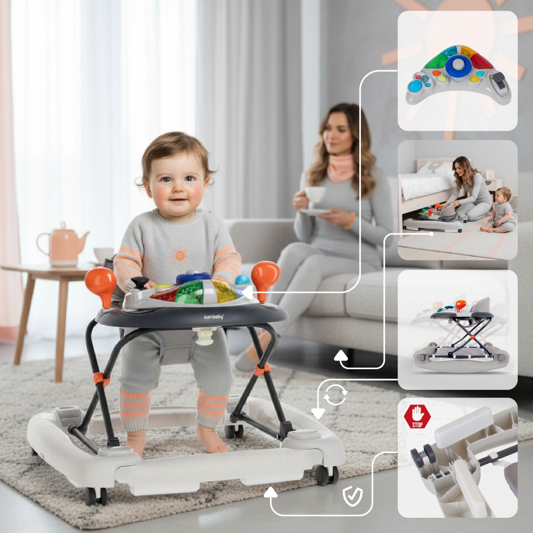 Sun Baby Interaktywny Chodzik dla dziecka kołyska z kierownicą szary