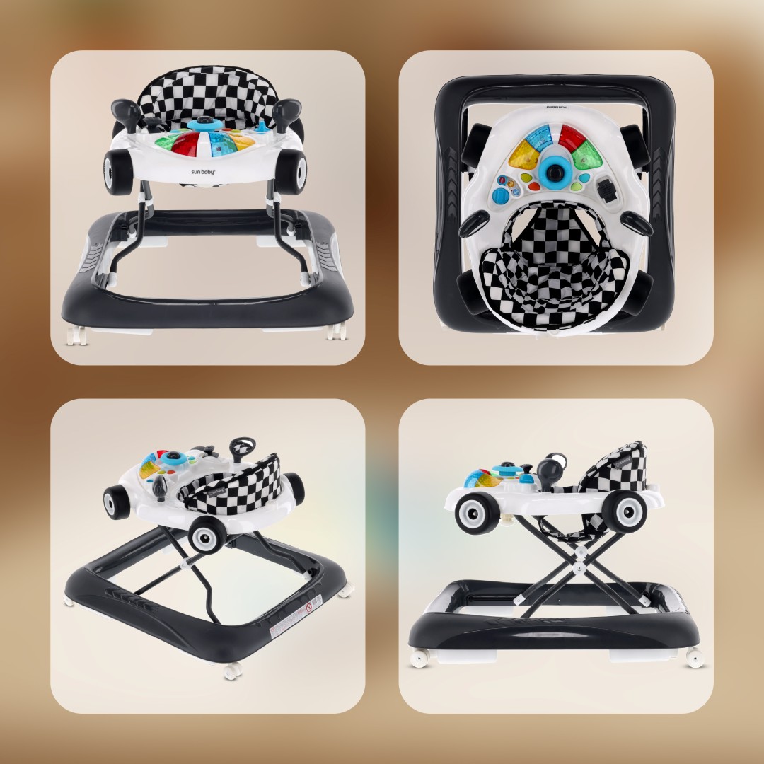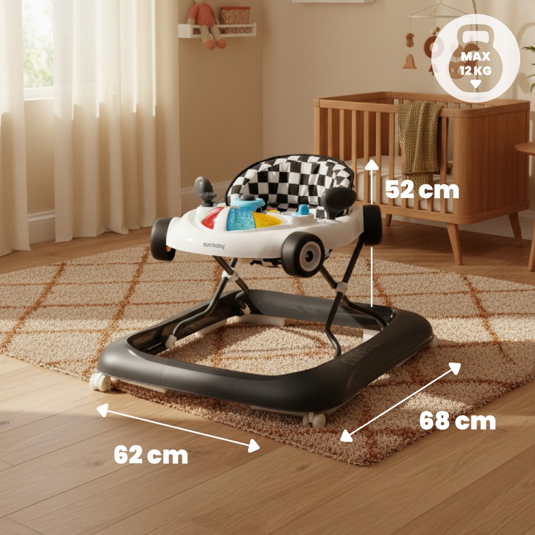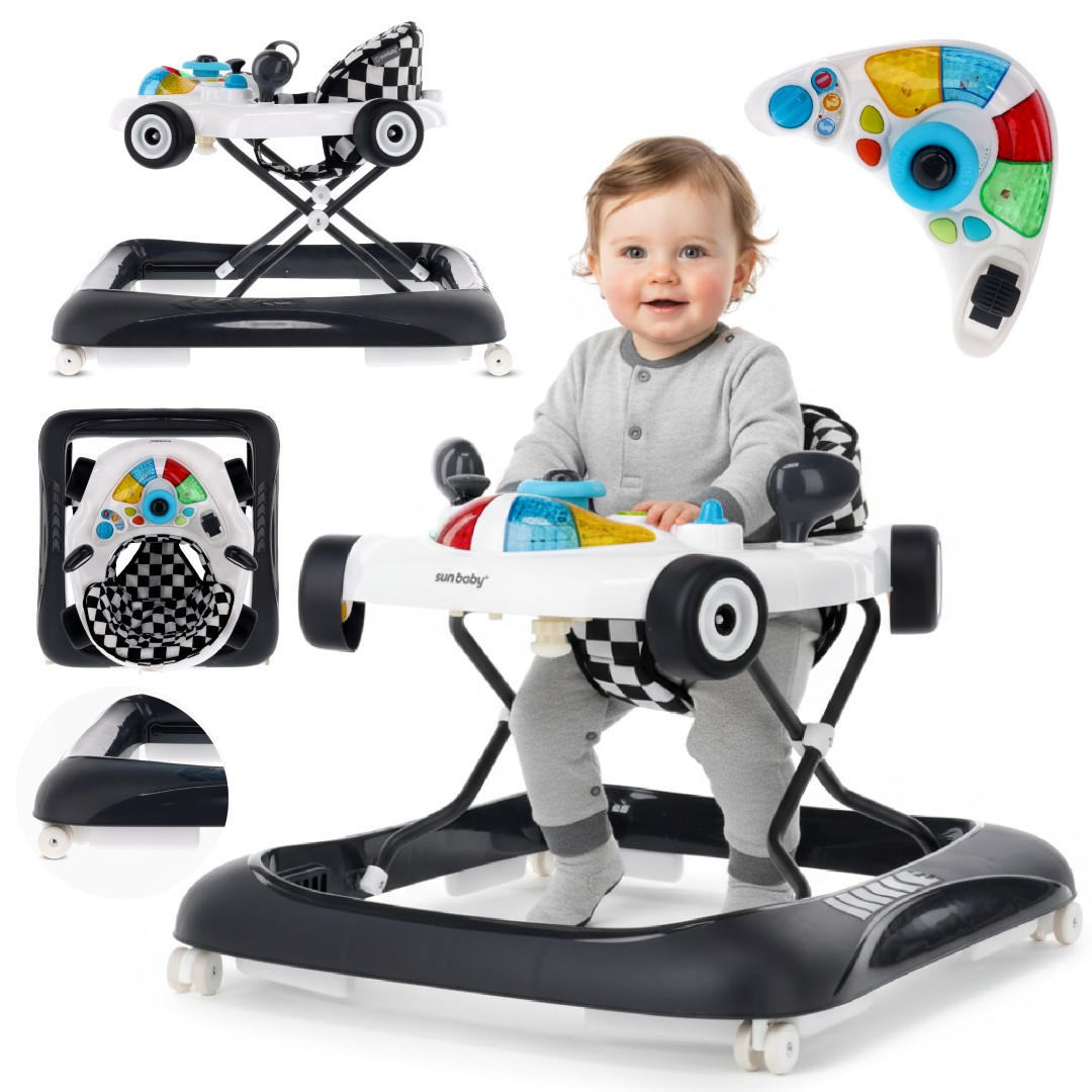 Sun Baby Interaktywny chodzik dla dzieci wyścigówka czarno biały