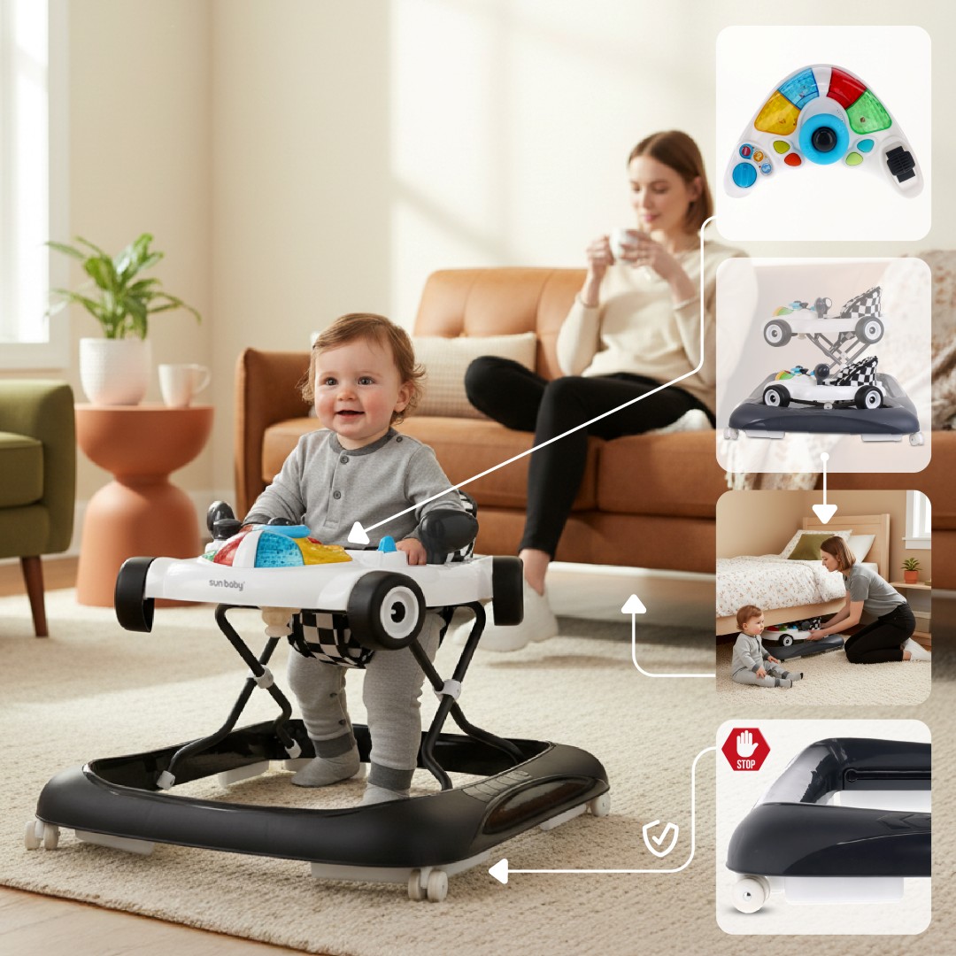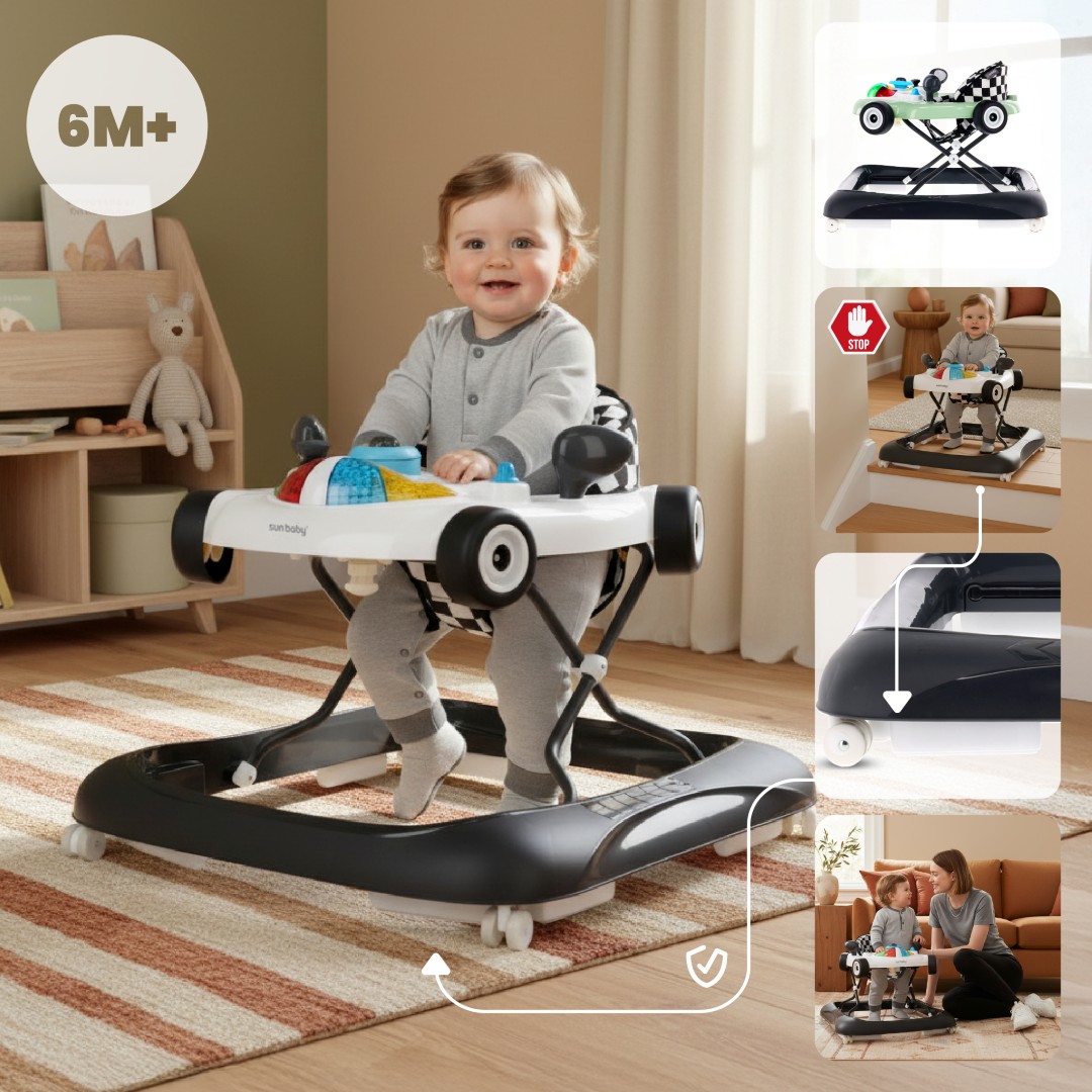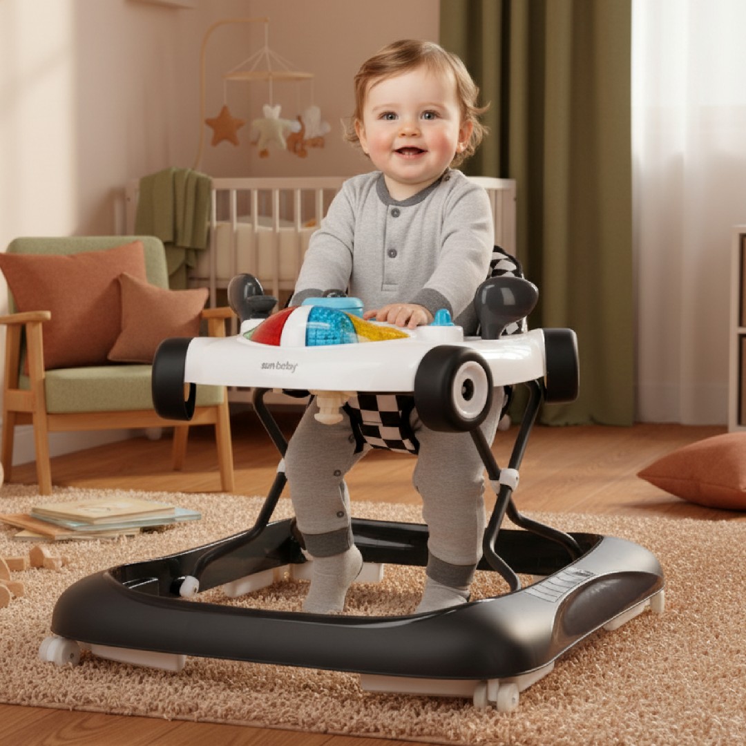 Sun Baby Interaktywny chodzik dla dzieci wyścigówka czarno biały