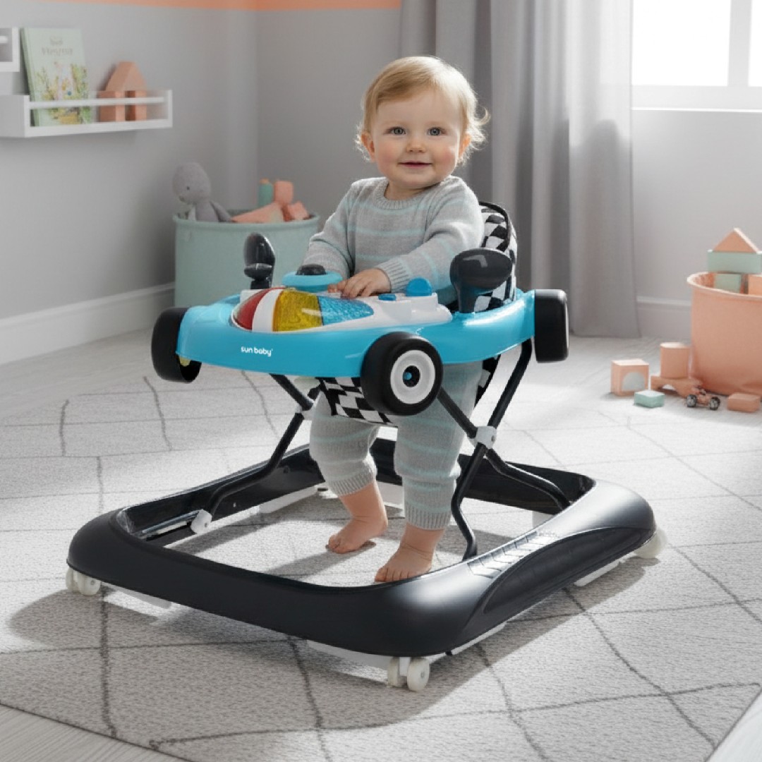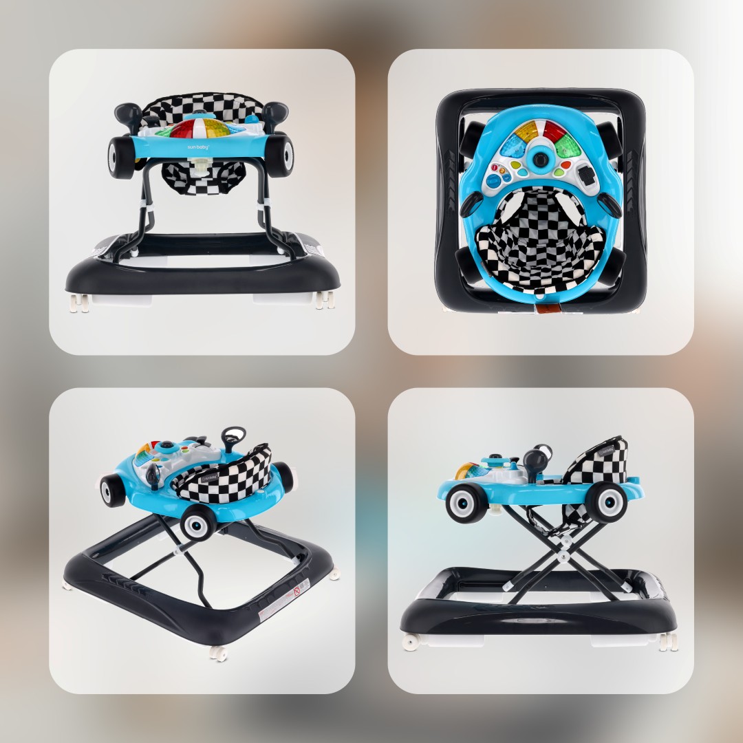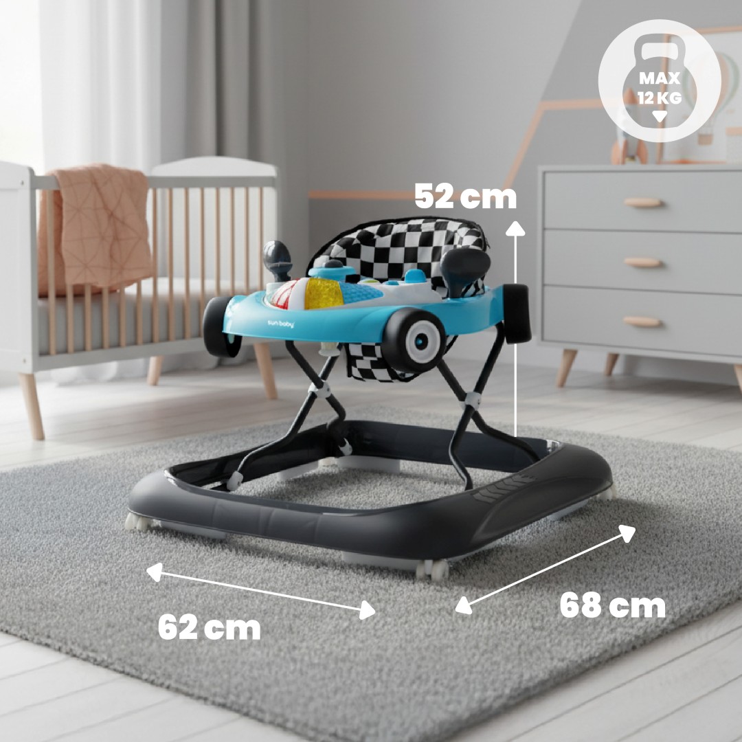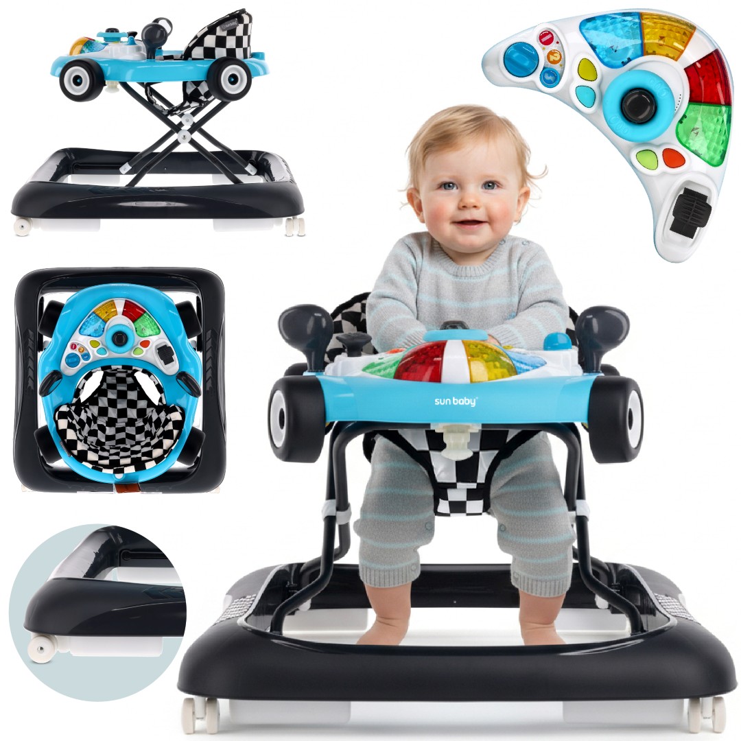 Sun Baby Interaktywny chodzik dla dzieci wyścigówka turkusowo czarny