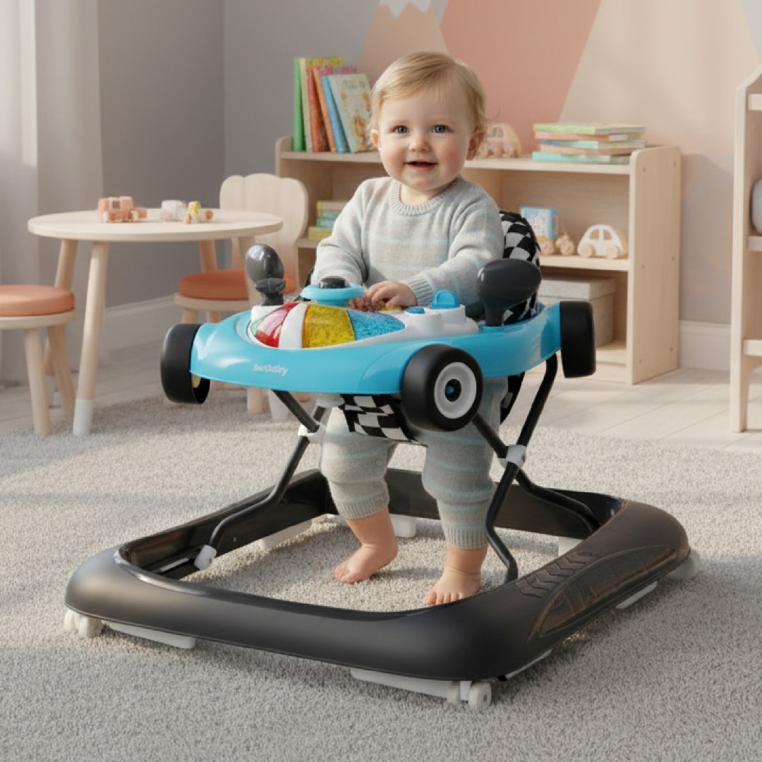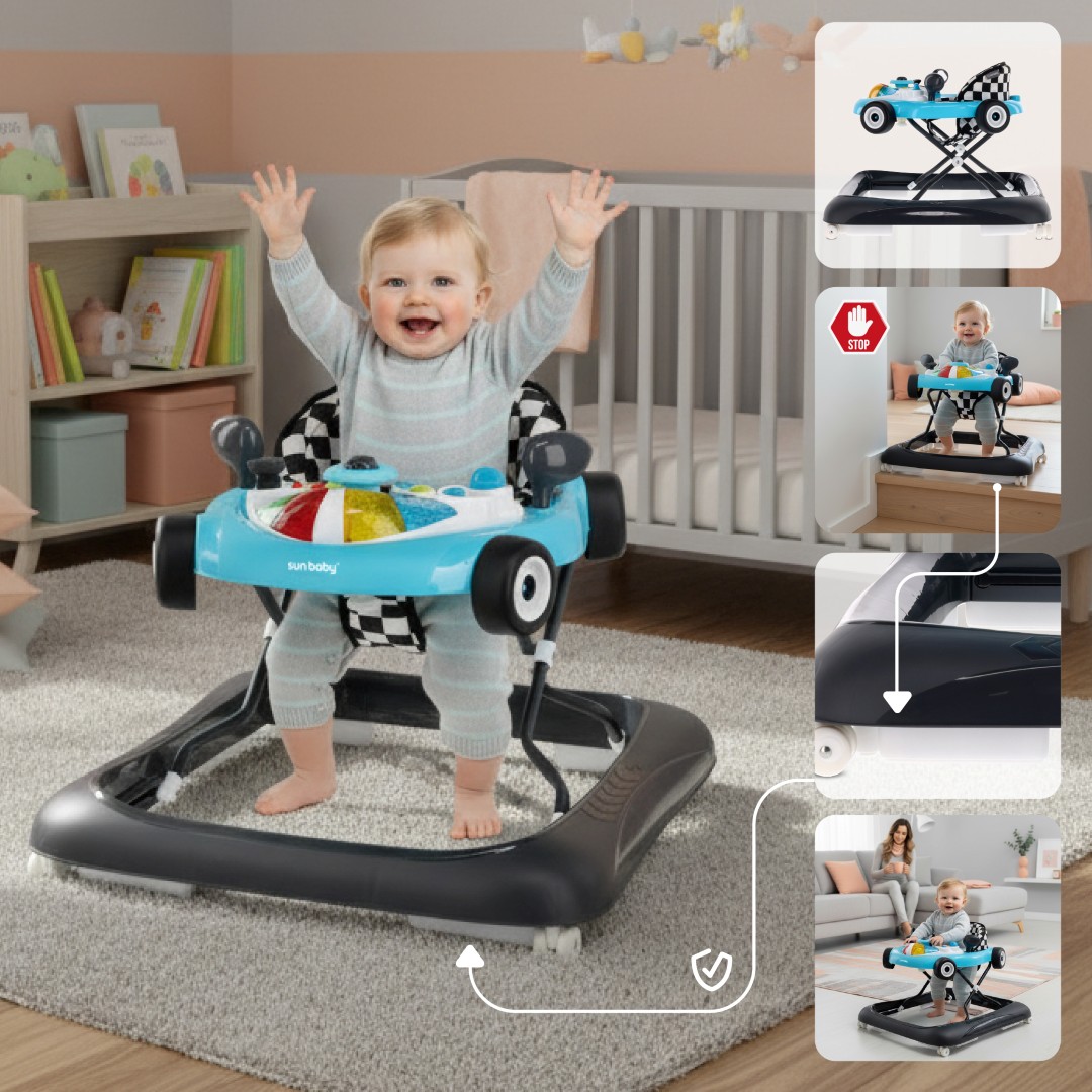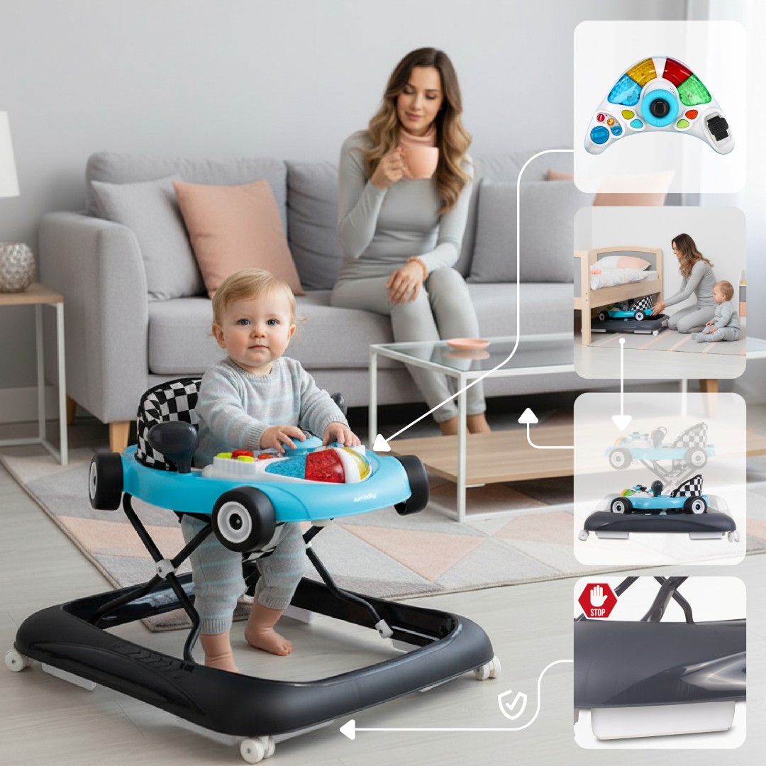 Chodzik, który przyśpiesza i wspiera naukę chodzenia - centrum zabawy i aktywności dla dzieci powyżej 6 miesiąca, do maksymalnej wagi 12 kg. Z chodzikiem odkrywanie otoczenia i nauka chodzenia jest znacznie łatwiejsza. Regulacja wysokości pozwala idealnie dopasować chodzik do wzrostu dziecka, wygodne siedzisko z wysokim oparciem zapewnia odpowiednią pozycję. Rozrywkowy pulpit z przyciskami, światełkami i dźwiękiem zapewni Twojemu dziecku wiele radości i pomoże rozwijać koordynację wzrokowo-ruchową. Utrzymanie chodzika nie przysporzy Ci zmartwień – wystarczy go przetrzeć wilgotna ściereczką, siedzisko można prać ręcznie.