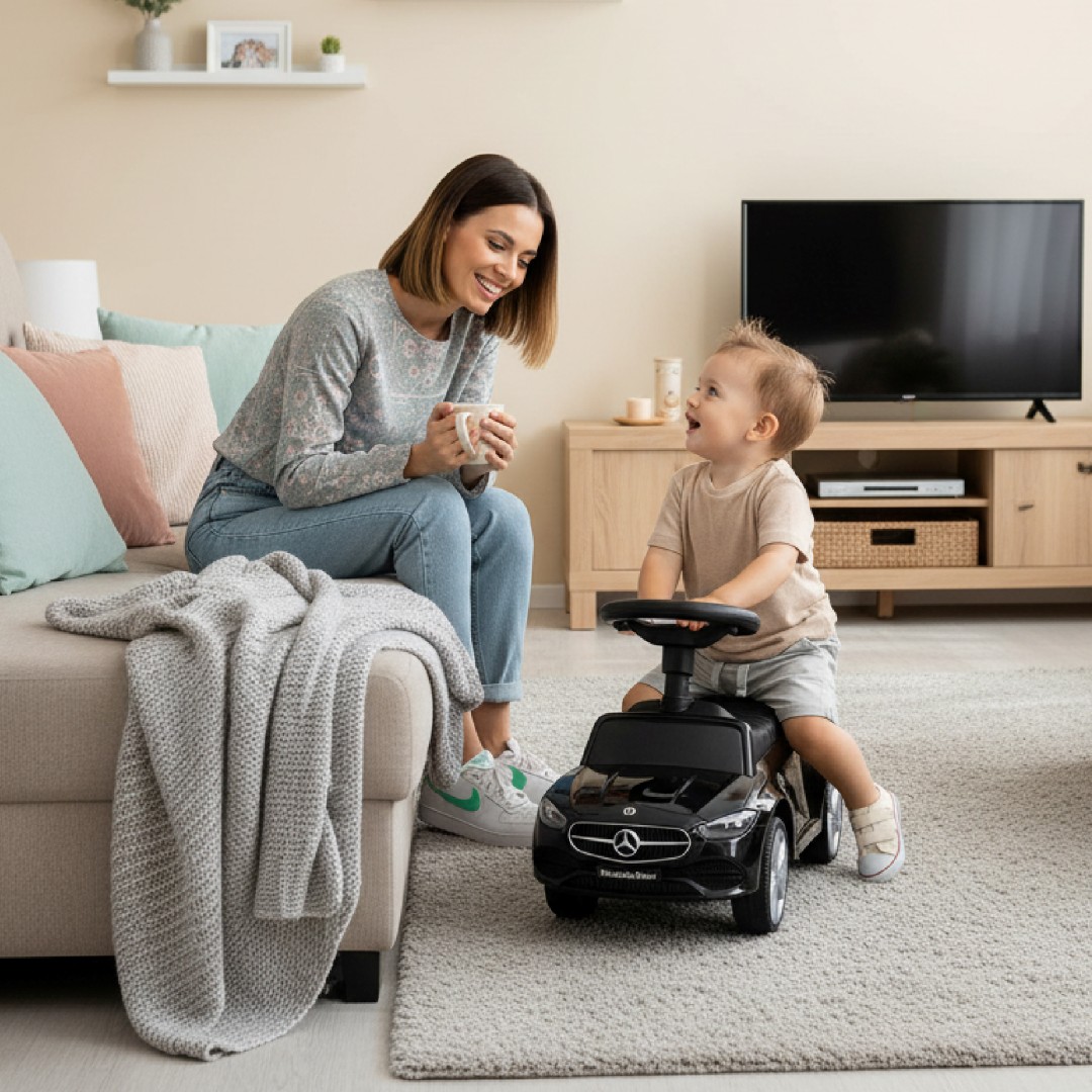 Jazda na jeździku wymaga od dziecka koordynacji ruchowej, co pozytywnie wpływa na jego rozwój motoryczny