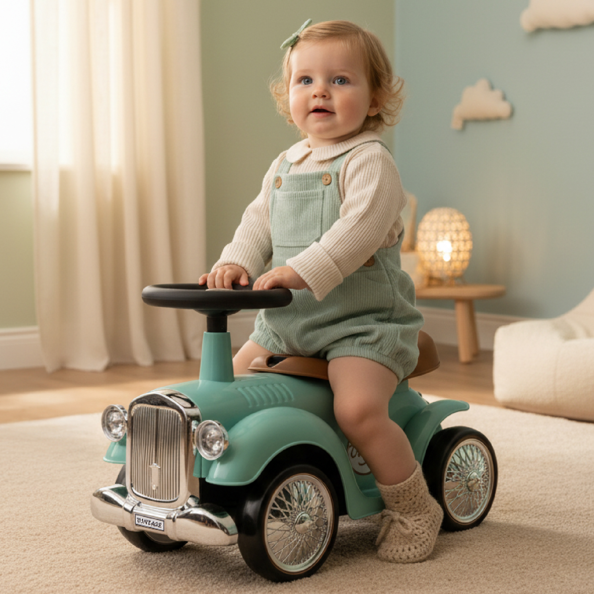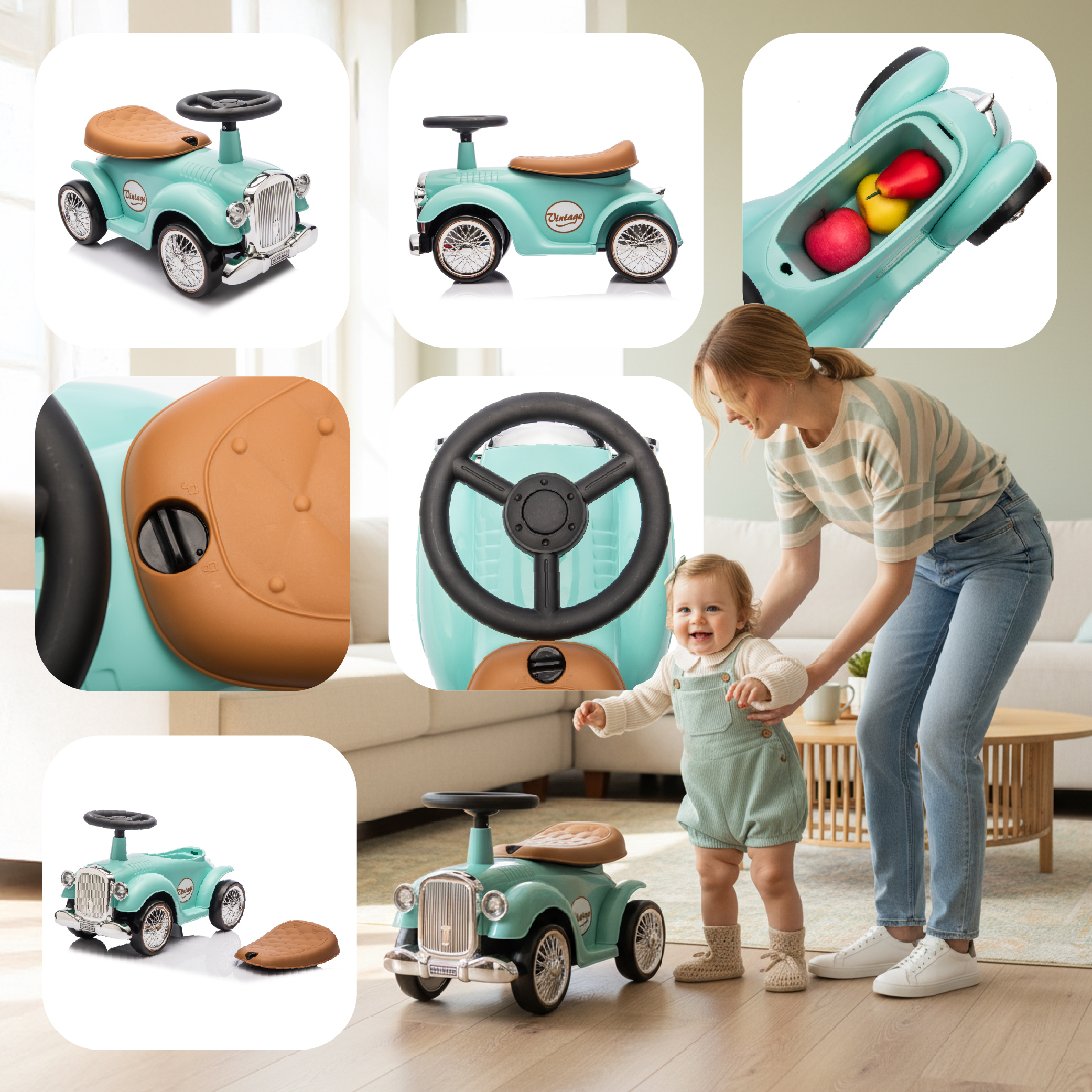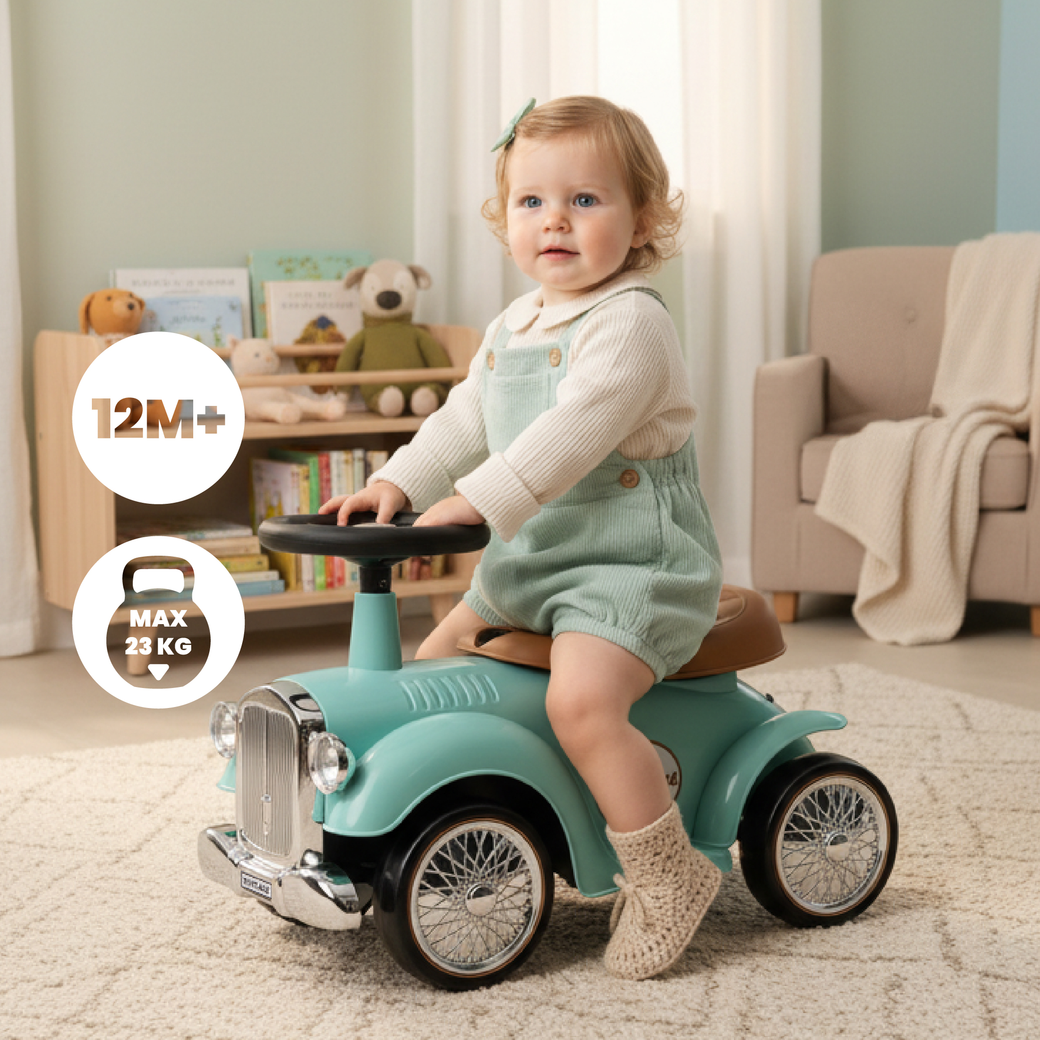 Jeździk Retro wyścigowy chodzik pchacz miętowy