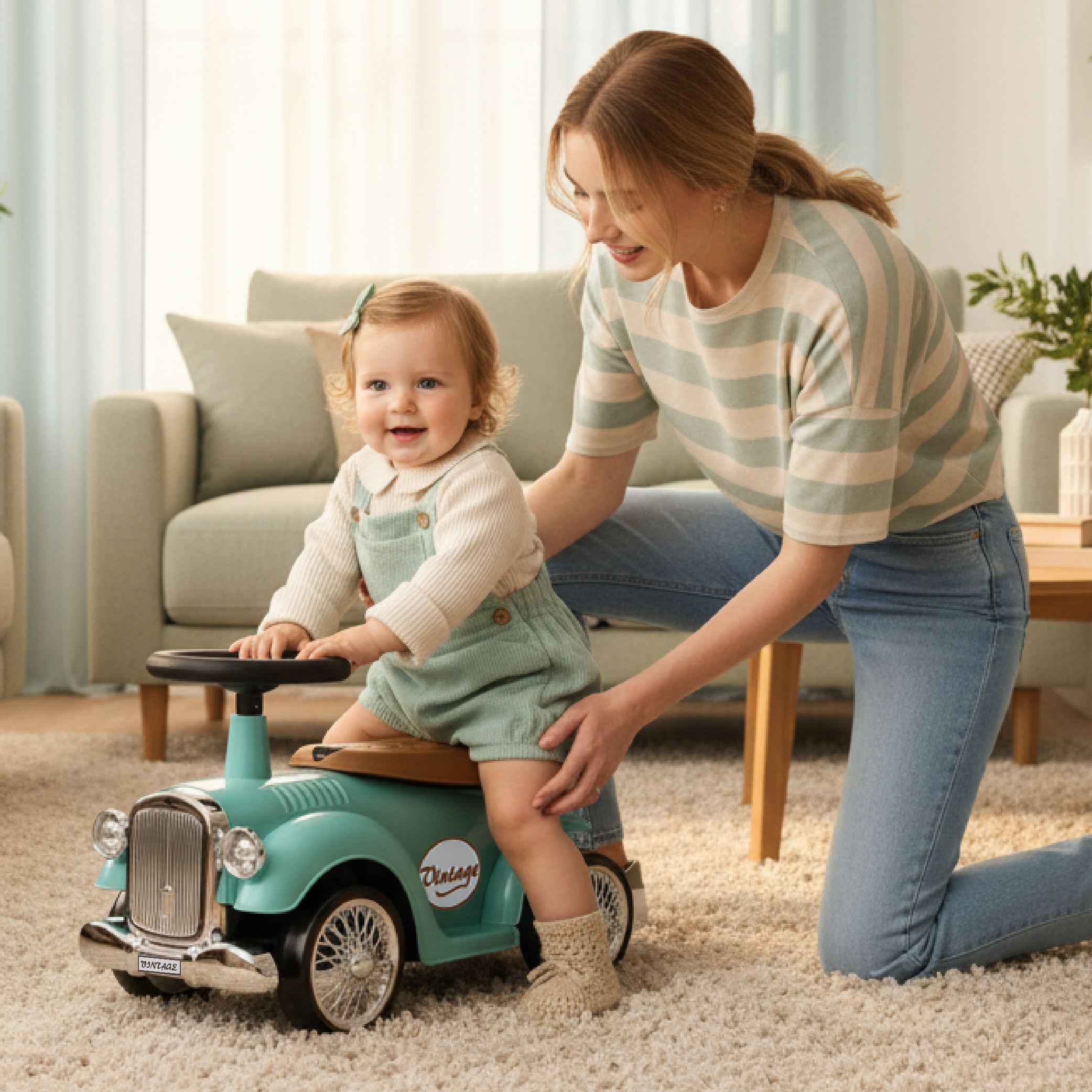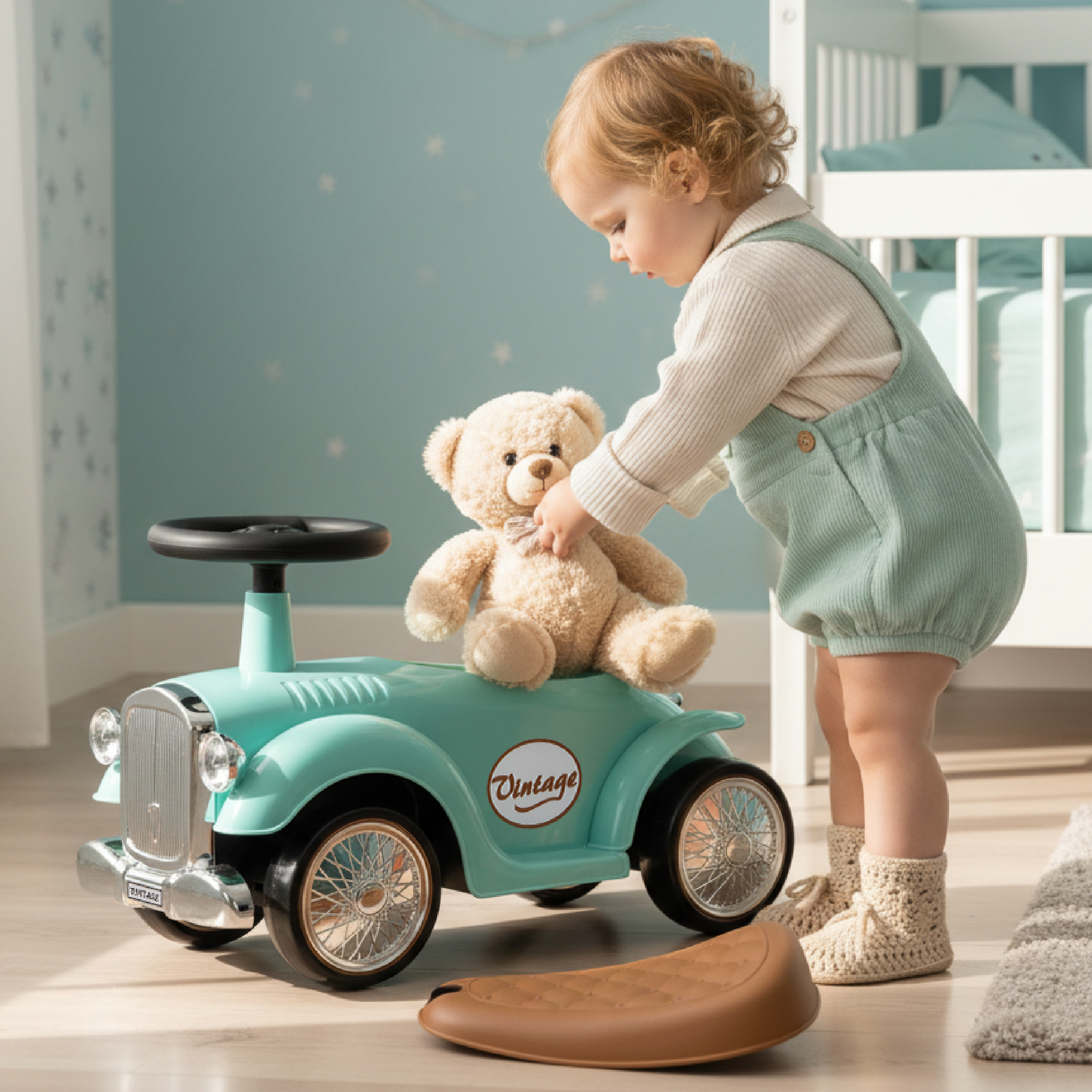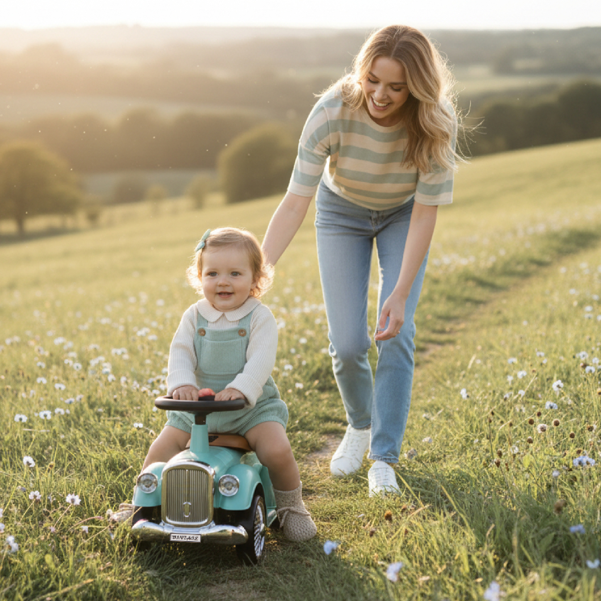 Jeździk Retro wyścigowy chodzik pchacz miętowy
