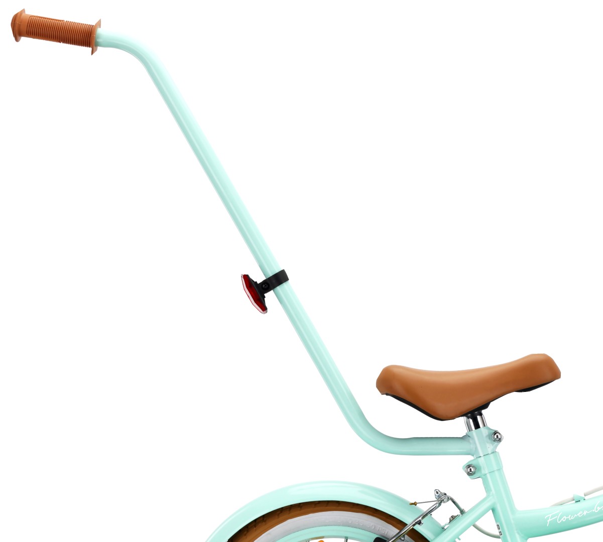Rower dziecięcy Flower Bike 14 cali dla dziewczynki z kółkami bocznymi, koszykiem i prowadnikiem