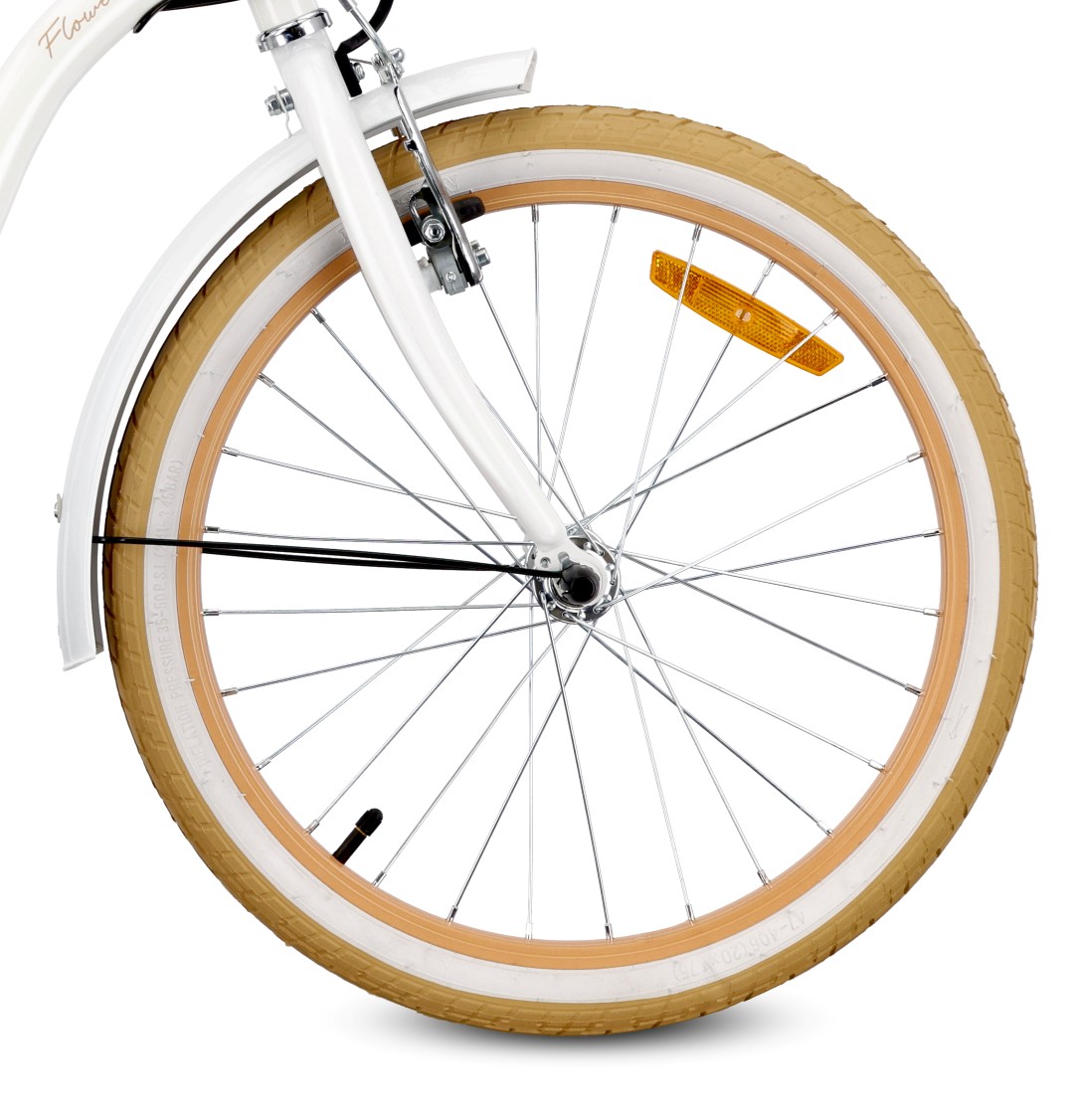 Długie ramię hamulca V-brake sprawia, że lekkie naciśnięcie klamki hamulca daje dużą siłę hamowania i niezawodne działanie nawet na mokrej obręczy. Rowerek Heart Bike jest wyposażony w hamulec V-brake przedniego i tylnego koła.