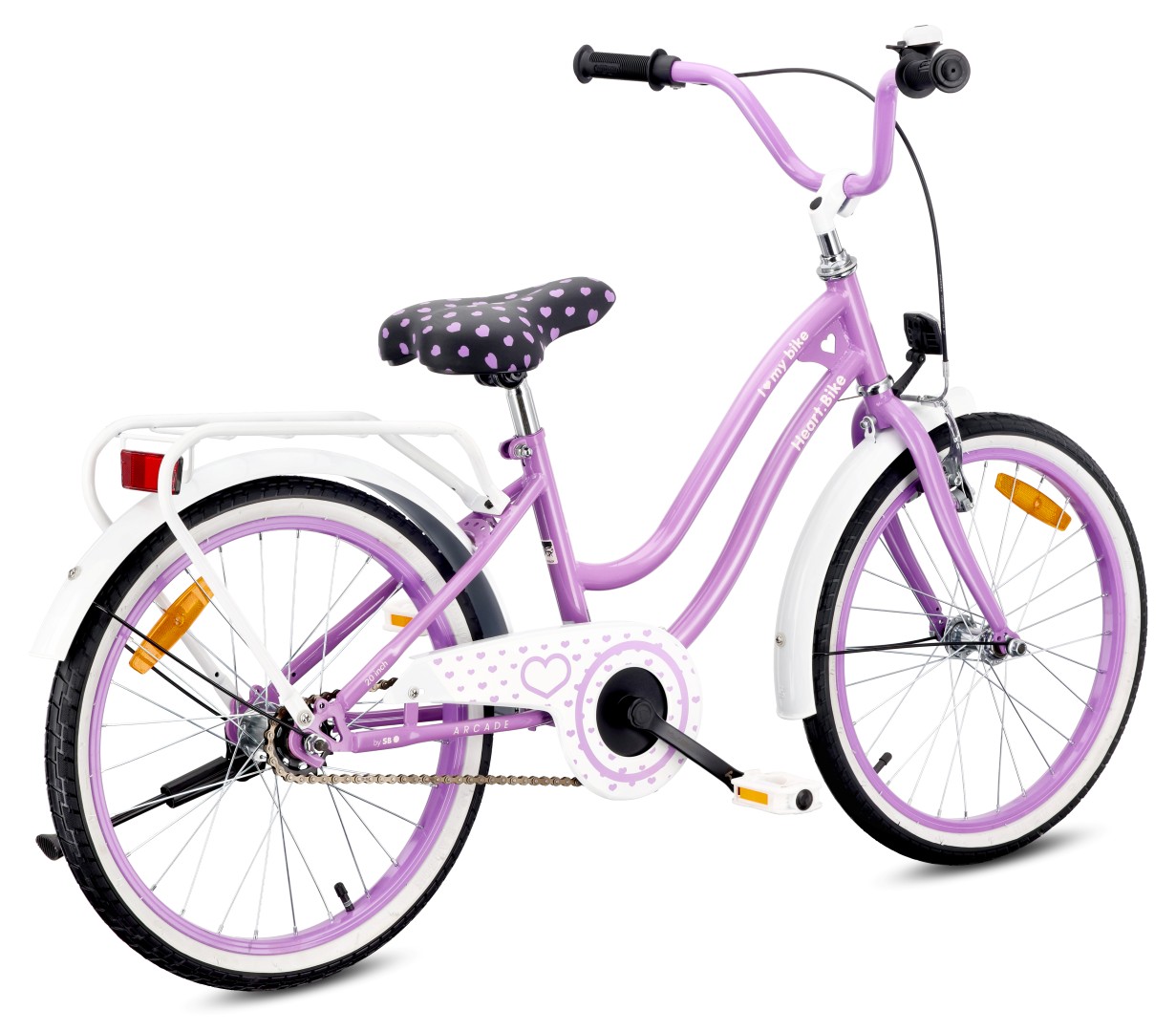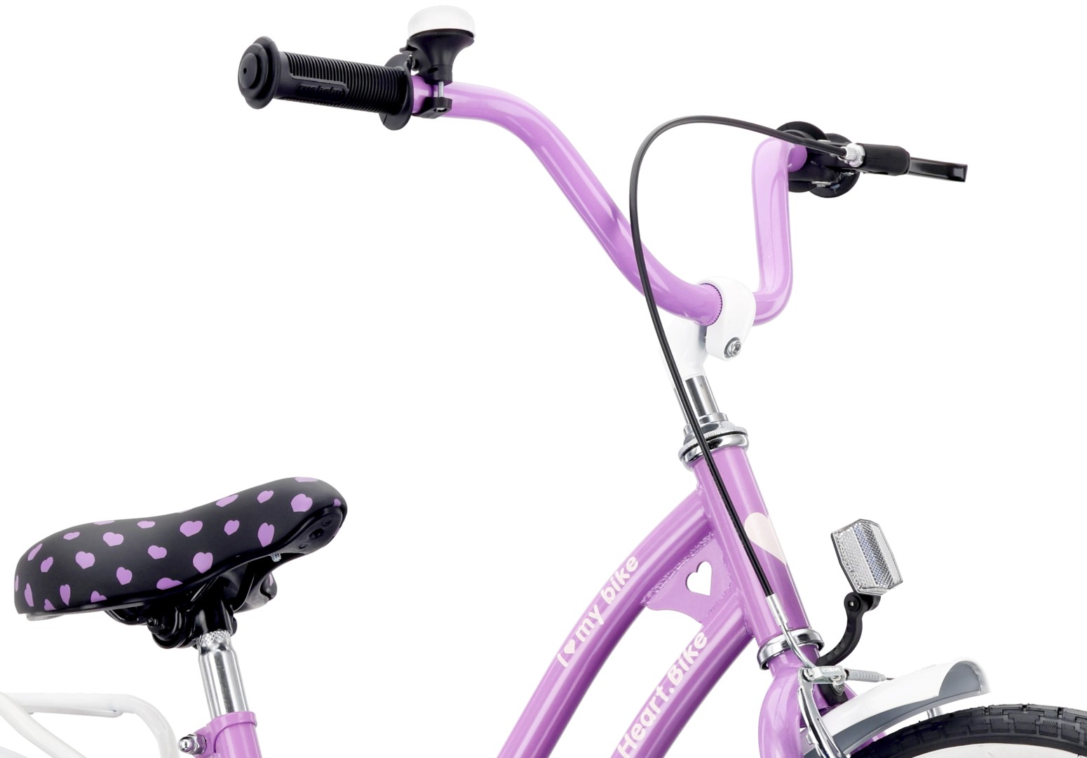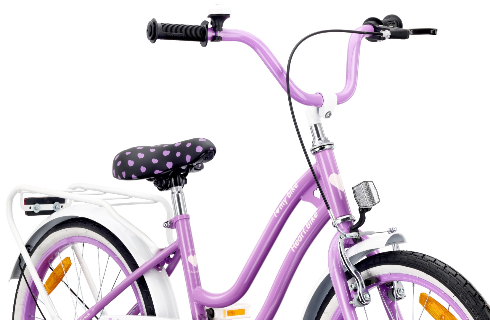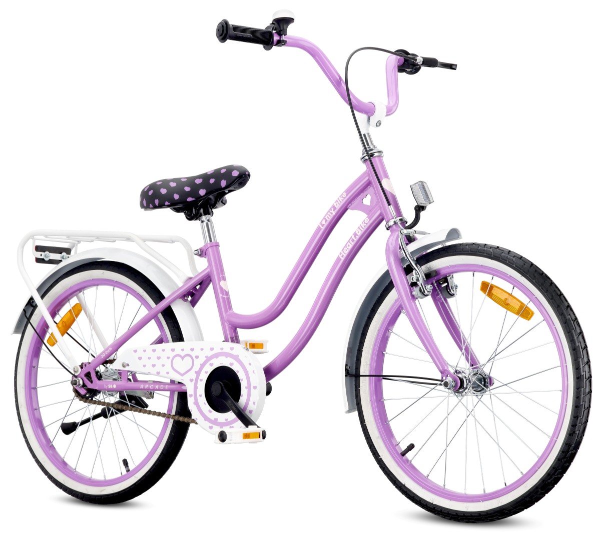 Rower 20 cali dziecięcy dla dziewczynki 5 6 7 8 lat Bagażnik Stopka Dzwonek Heart Bike fioletowy