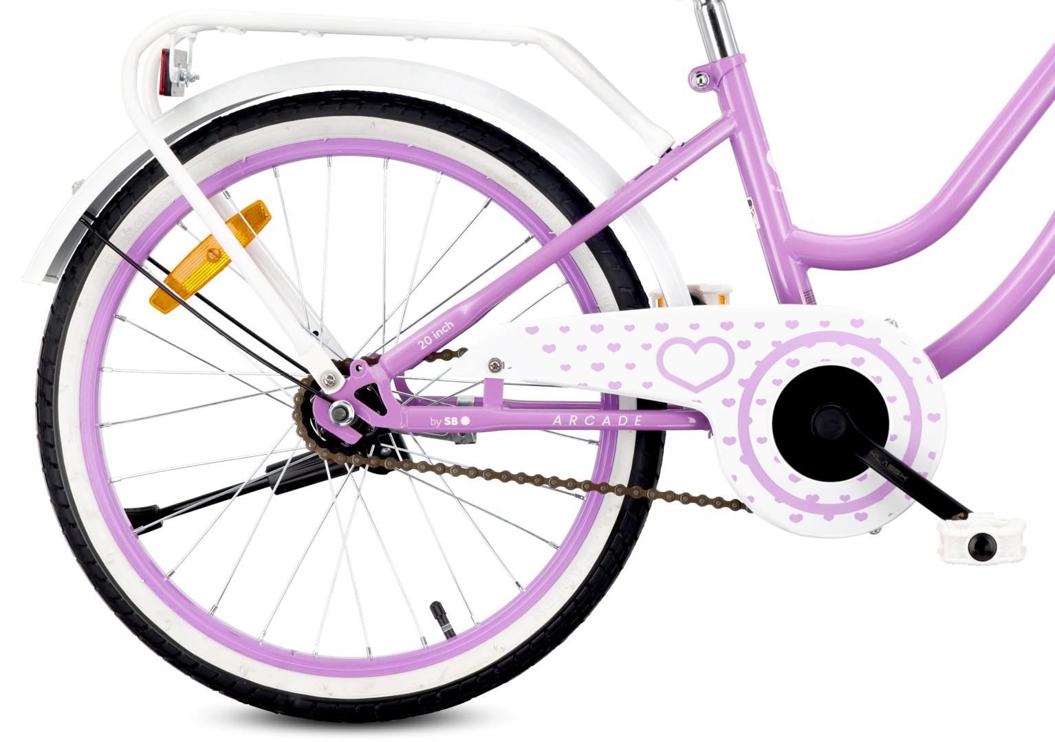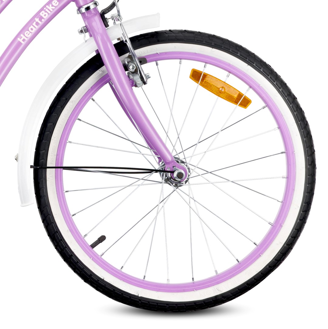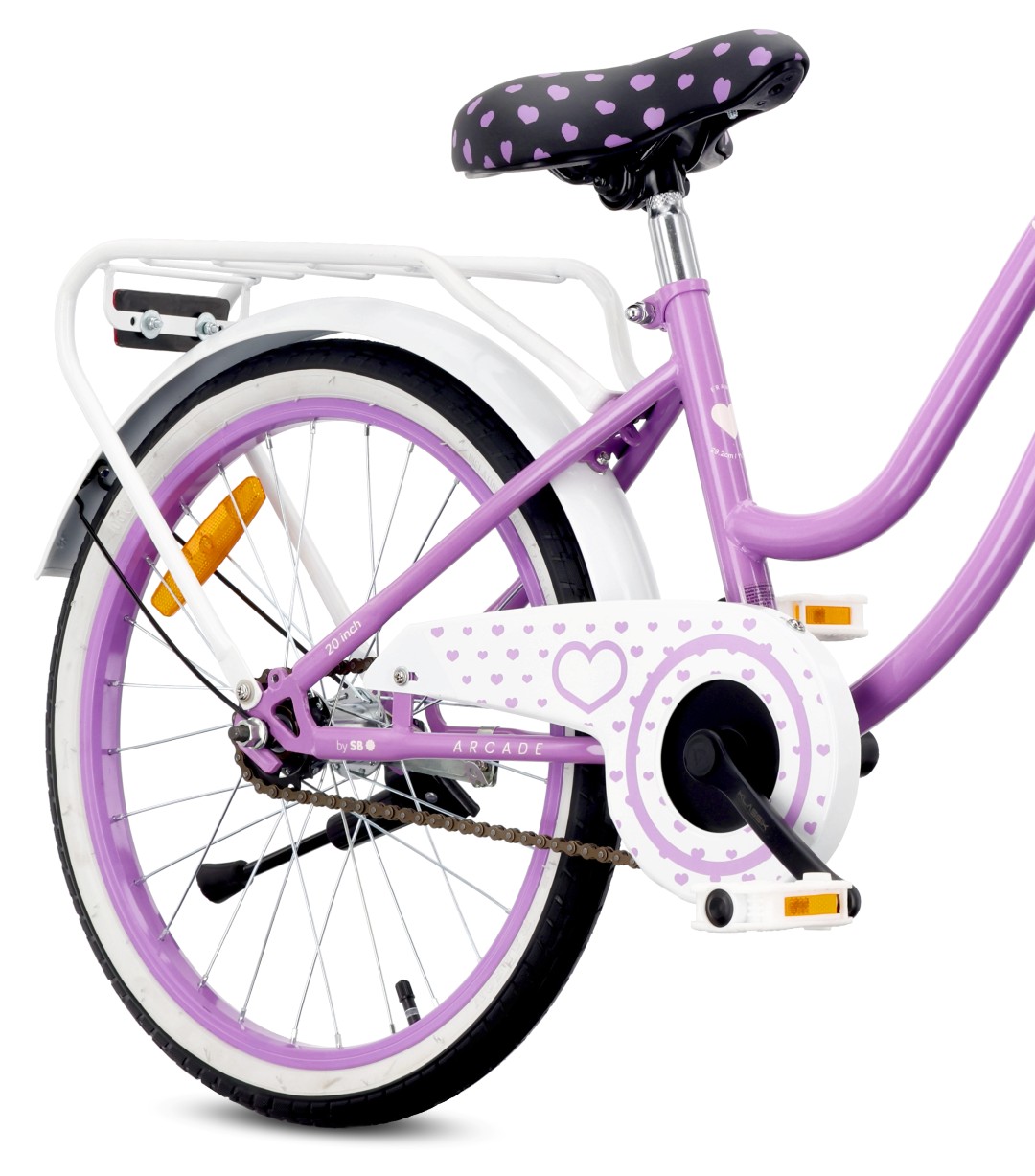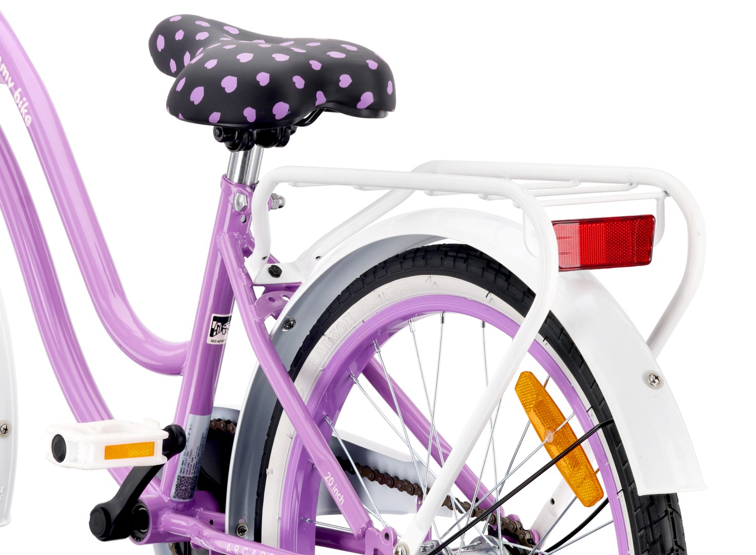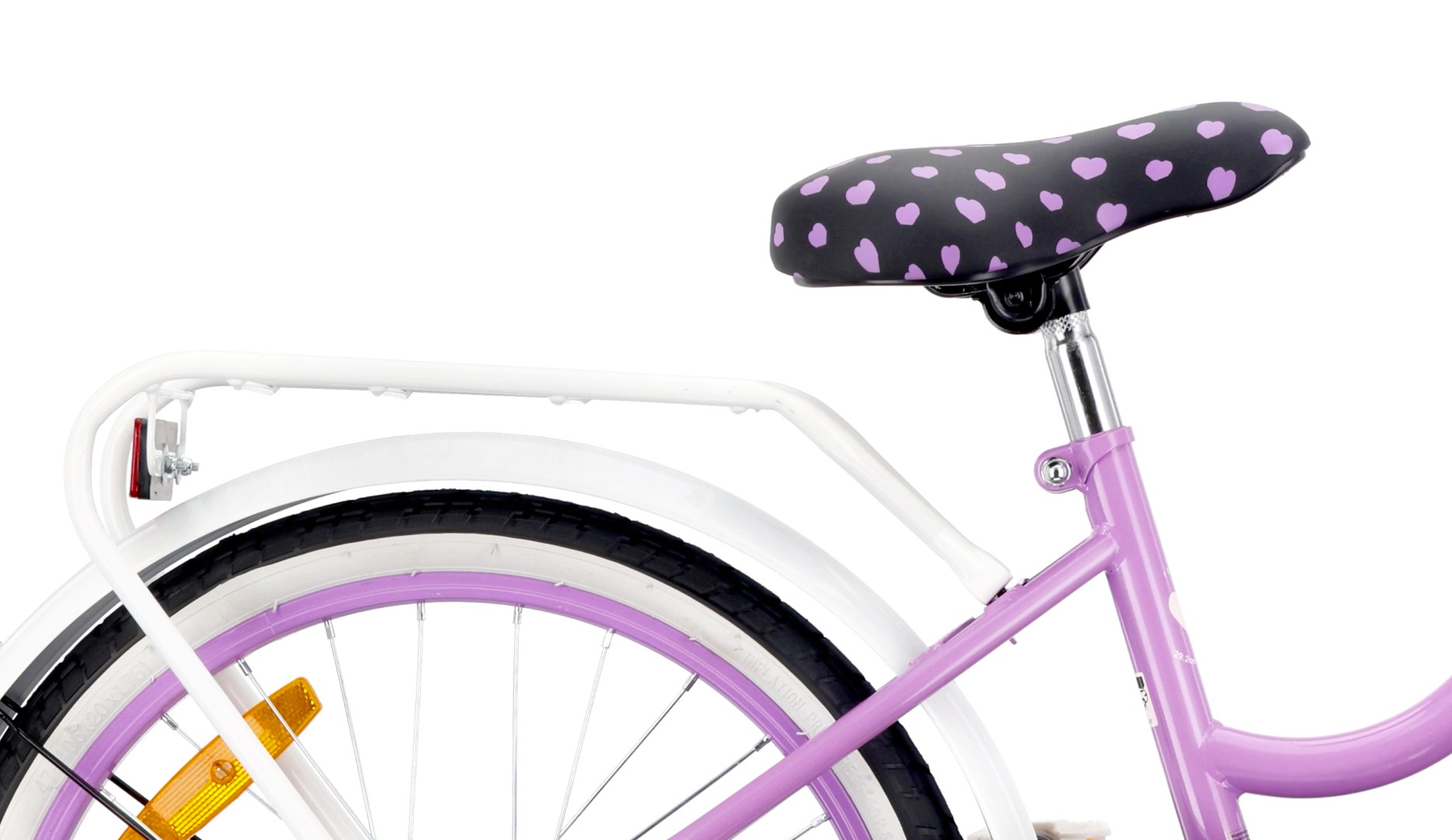Rower 20 cali dziecięcy dla dziewczynki 5 6 7 8 lat Bagażnik Stopka Dzwonek Heart Bike fioletowy