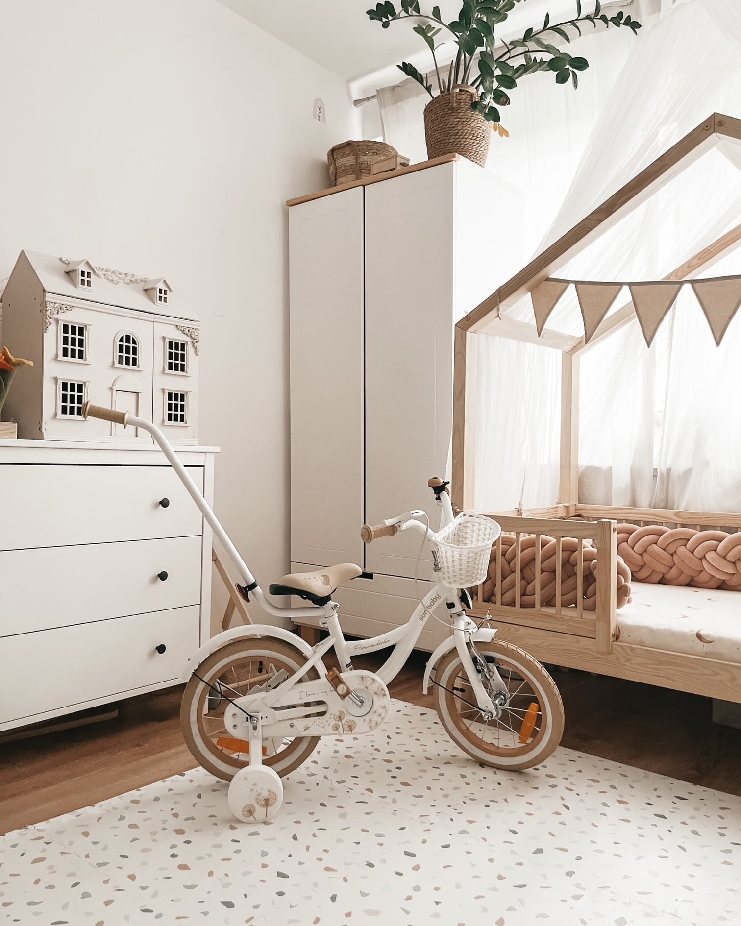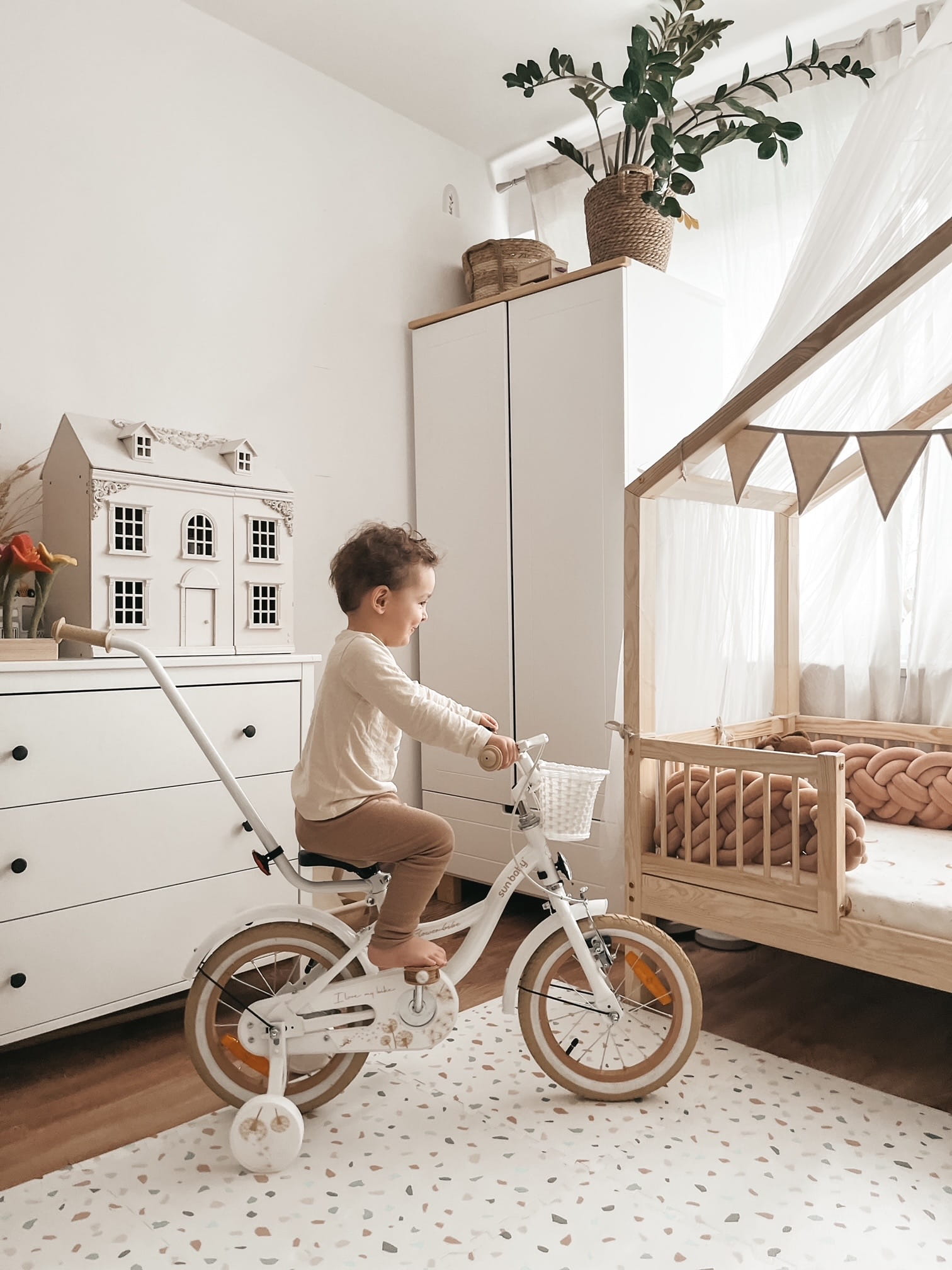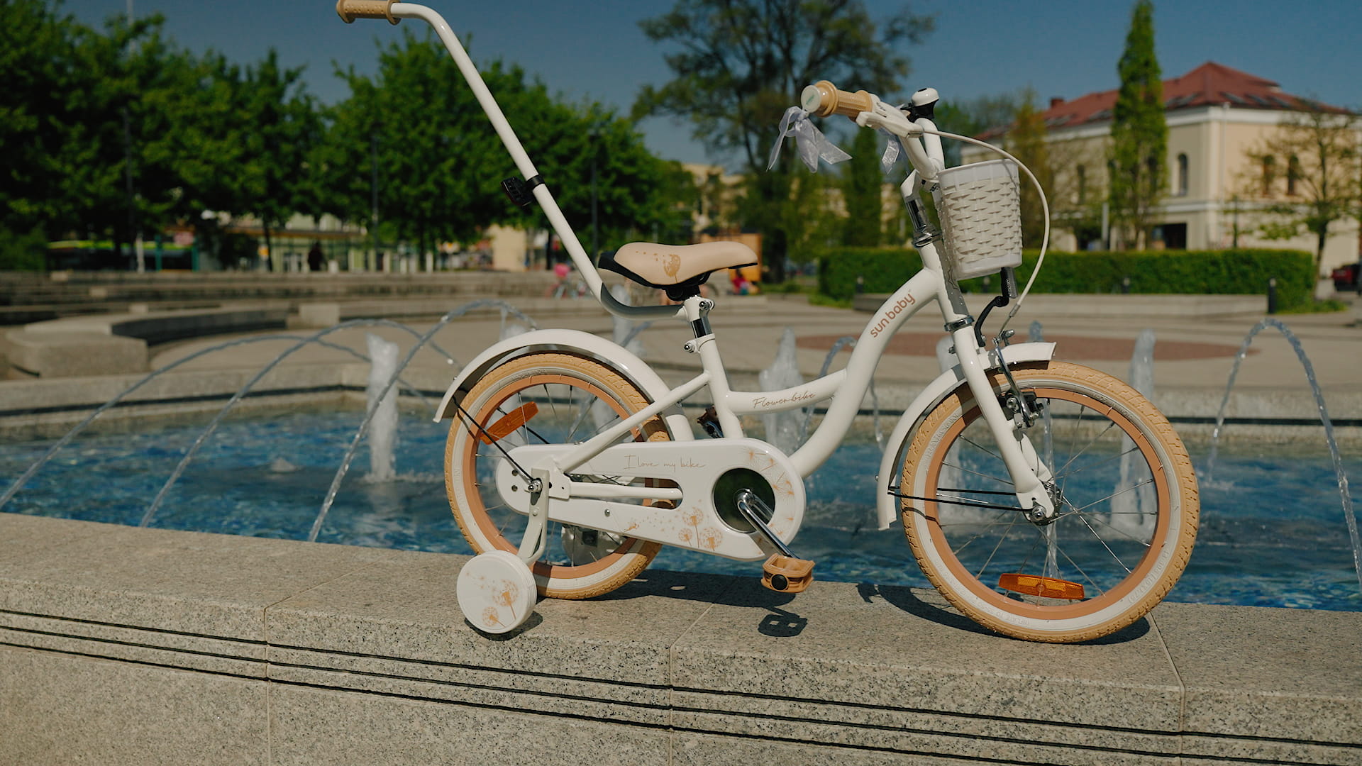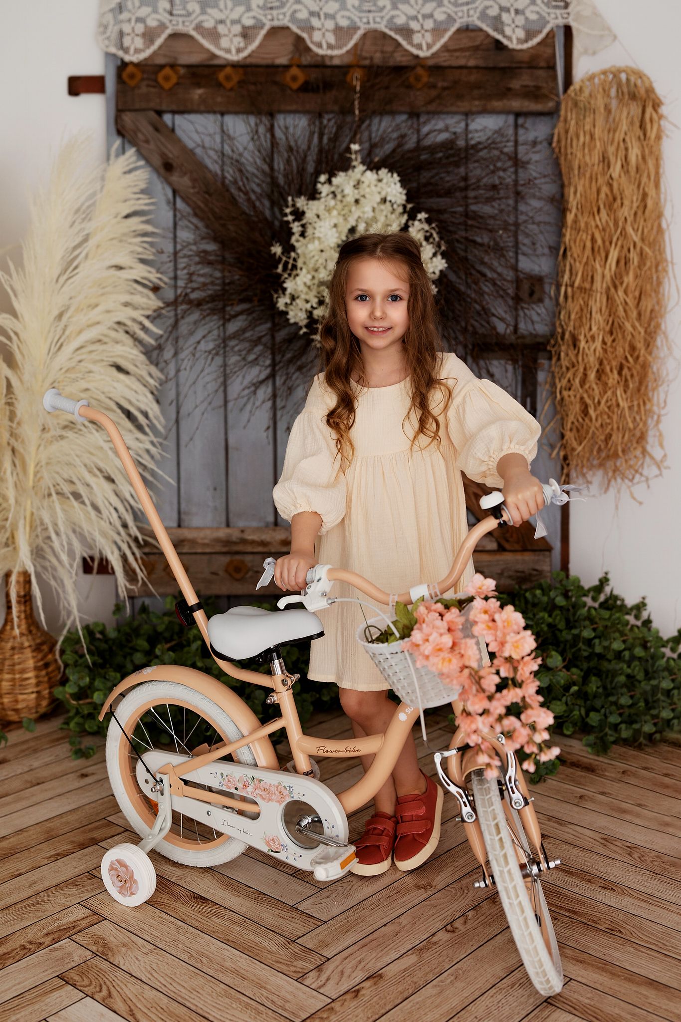 Stonowana kolorystyka i klasyczna linia ramy rowerka Flower Bike nadają mu wyjątkowy, ponadczasowy wygląd.