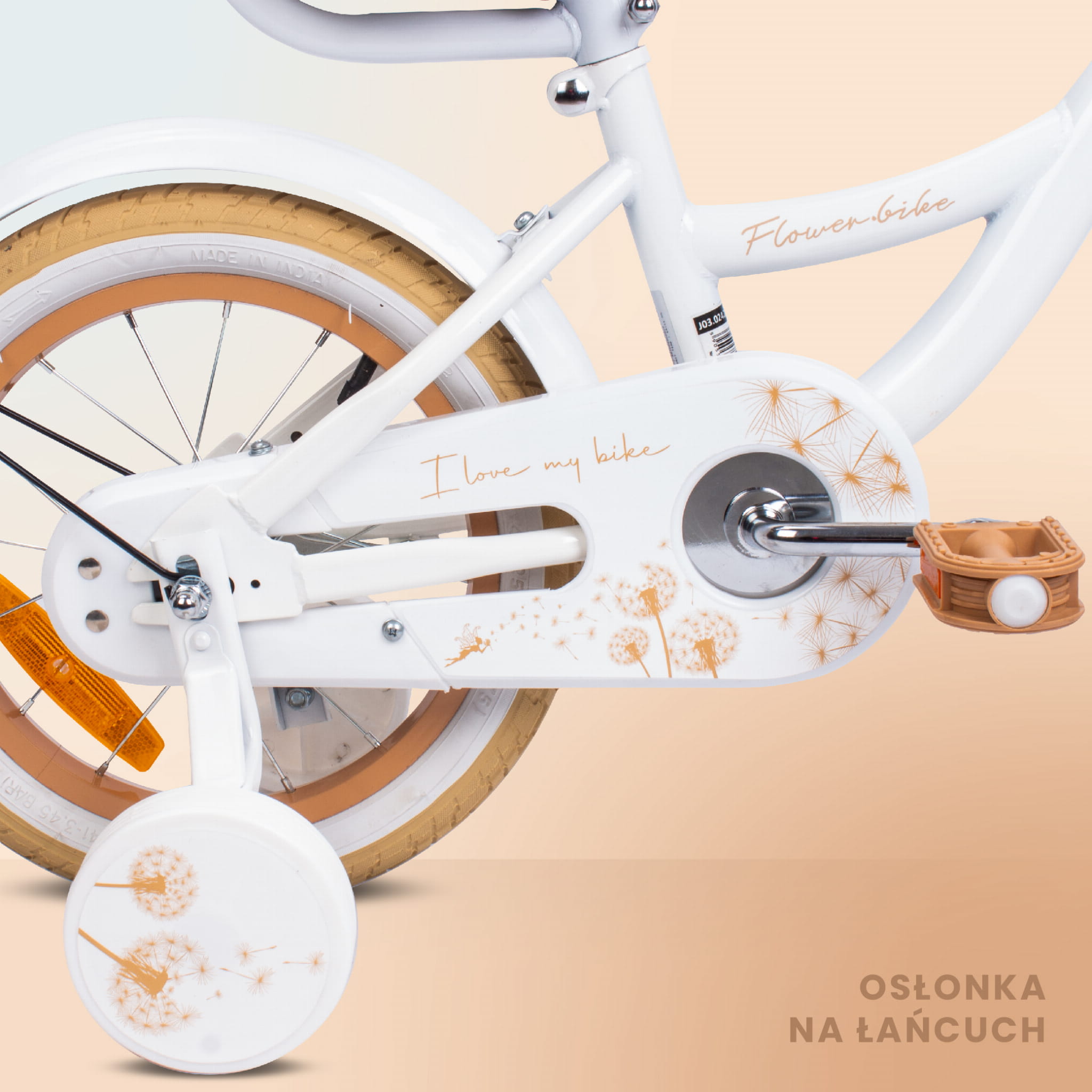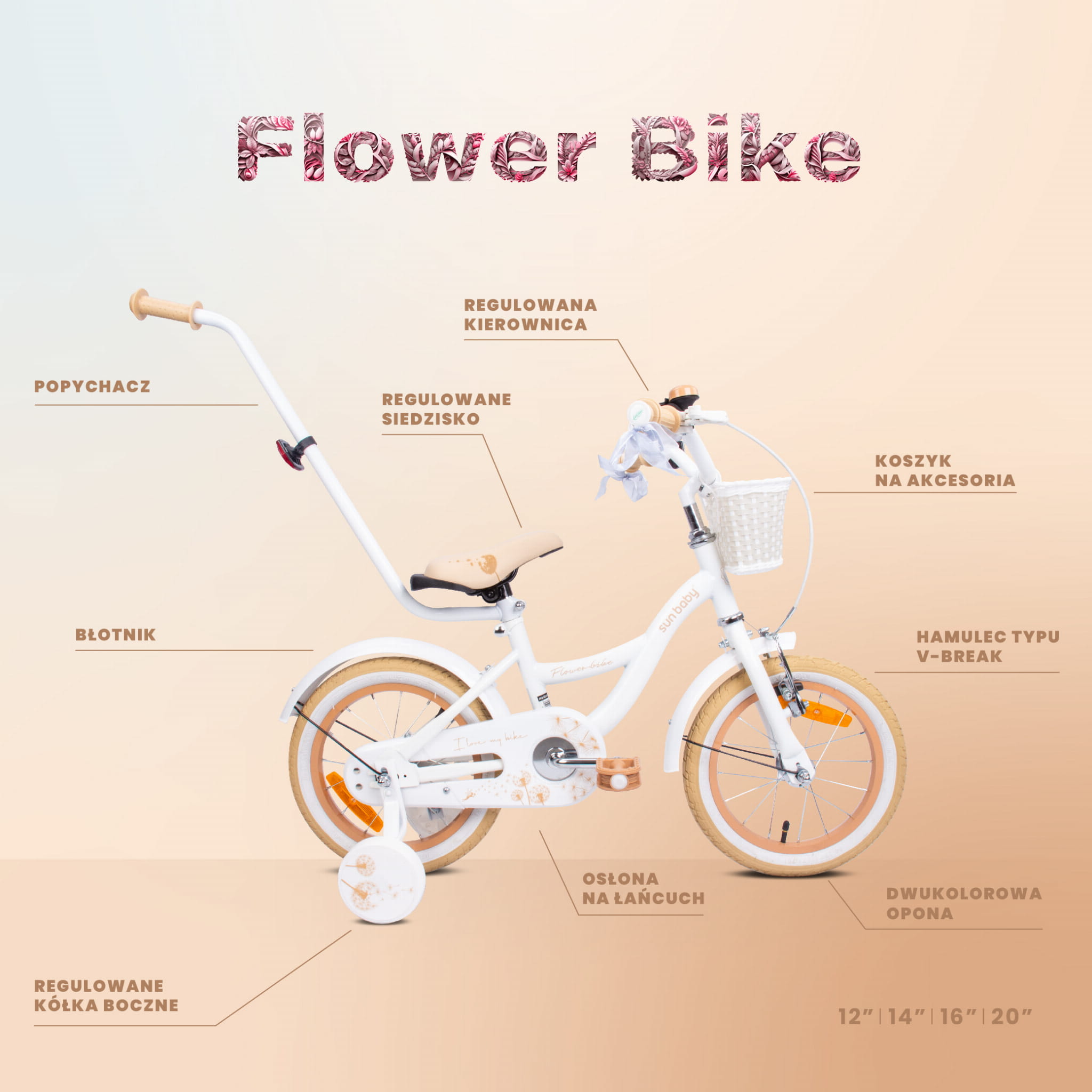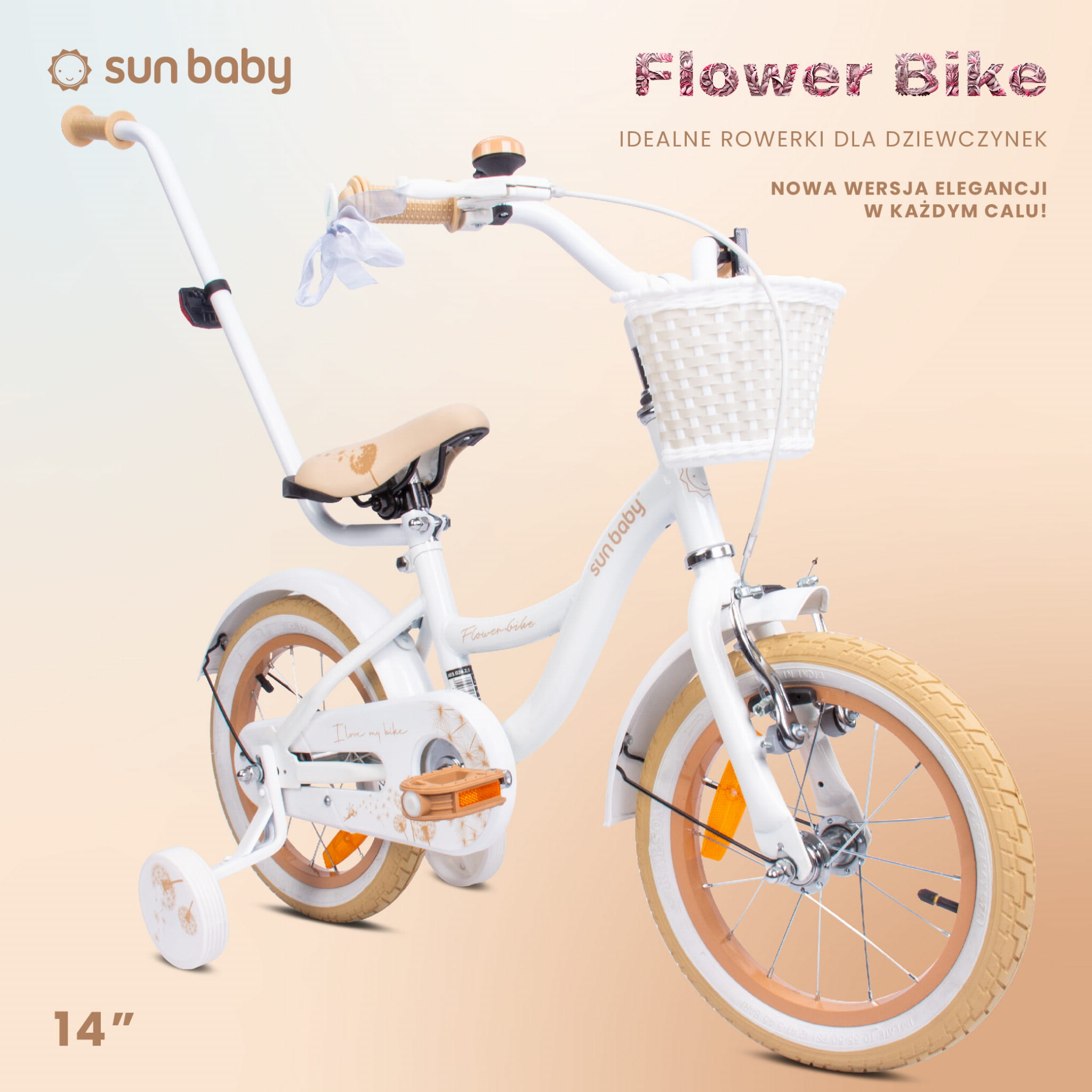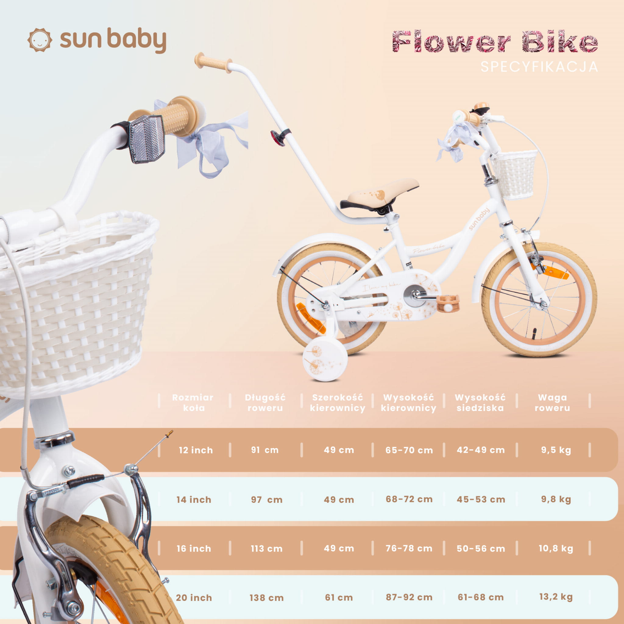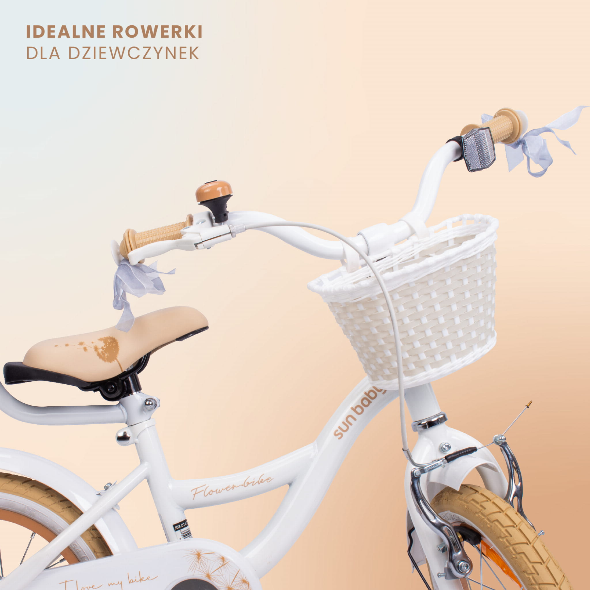 Sun Baby Rower dla dziewczynki 14 cali Flower bike Dmuchawiec biało beżowy