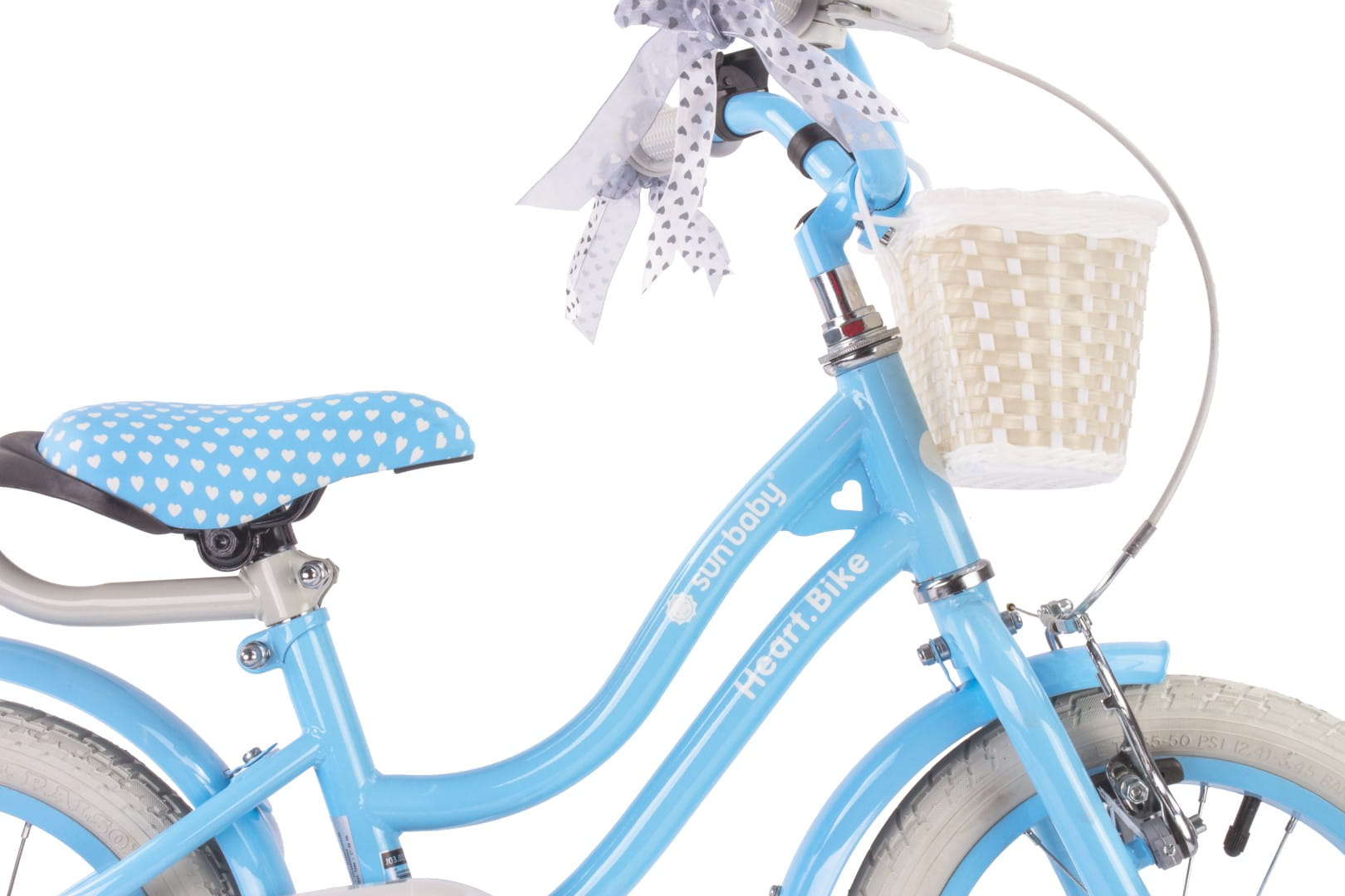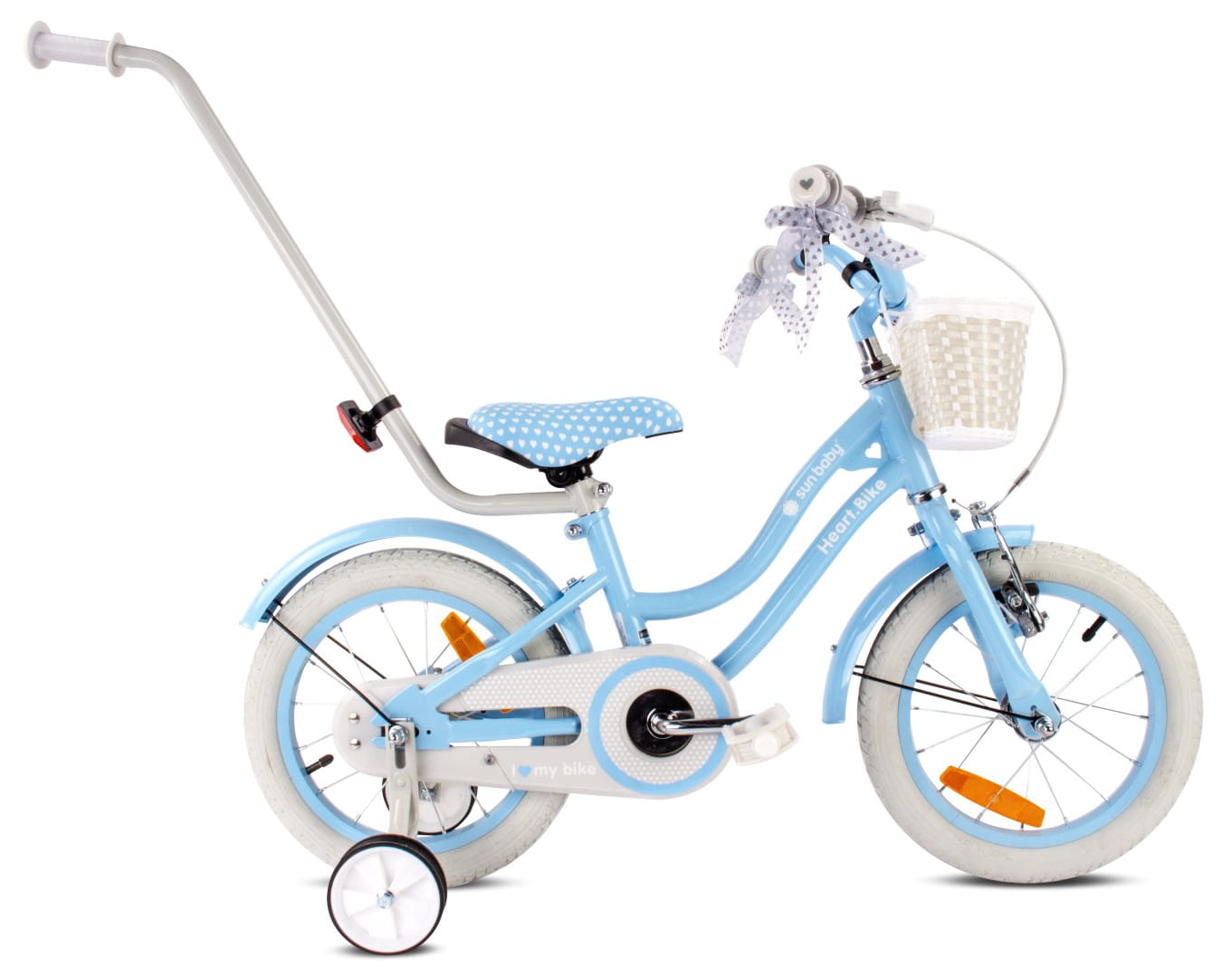 Heart Bike Rower dla dziewczynki dziecięcy 14 cali Pchacz Koszyk Kółka boczne 3-5 lat Silver Moon błękitny Sun Baby