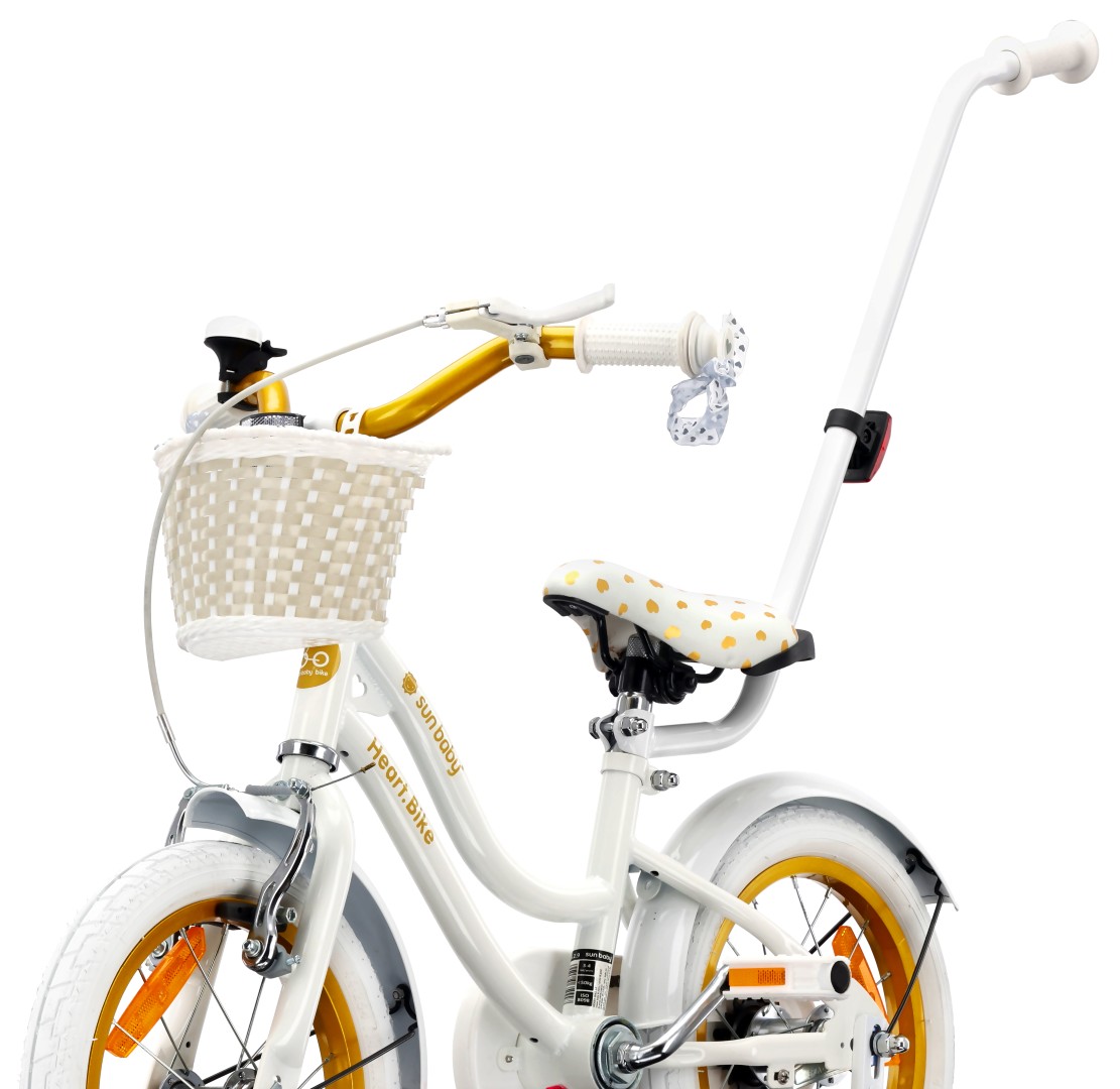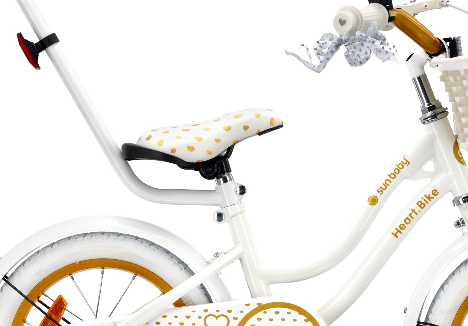 Rower dla dziewczynki 14 cali Pchacz kółka boczne Heart Bike biało złoty