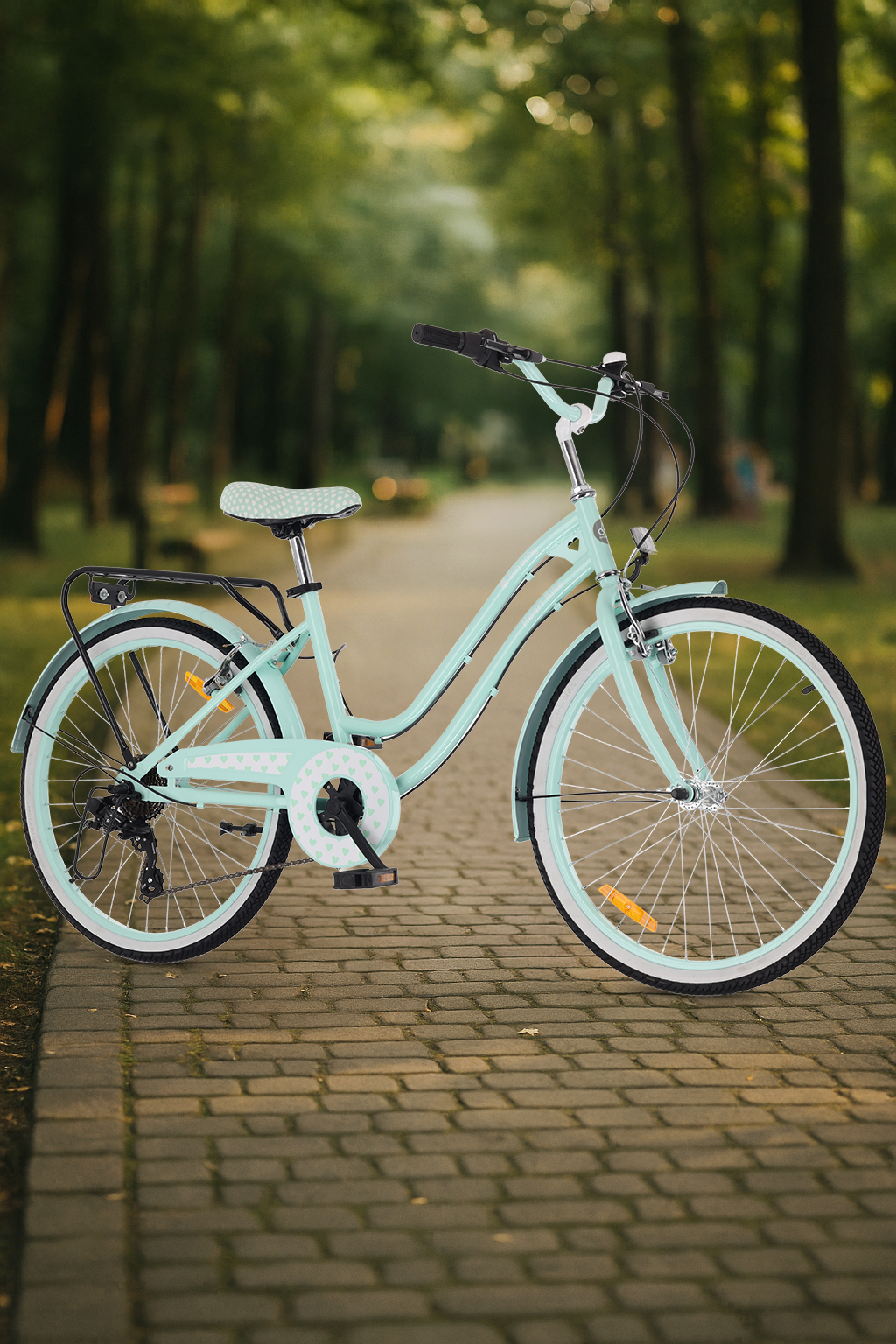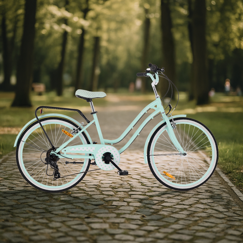 Rower 24 cale dla dziewczynki miejski na komunię Shimano 7 biegów Heart Bike miętowy