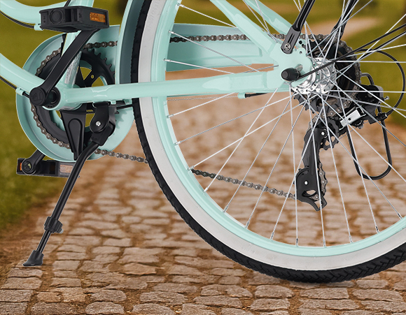 ✔️ rowerek zawiera: hamulce V-brake przedniego i tylnego koła, metalowe błotniki przód i tył, duża osłona łańcucha, odblaski, dzwonek, bagażnik, stopkę boczną, przerzutkę Shimano