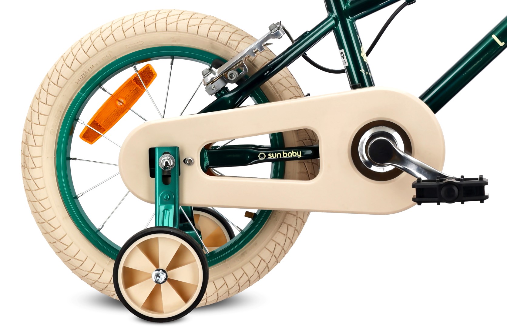 Rower dziecięcy 14 cali dla chłopca 3 4 5 lat Prowadnik Kółka boczne Koszyk V-brake LOVEL zielony