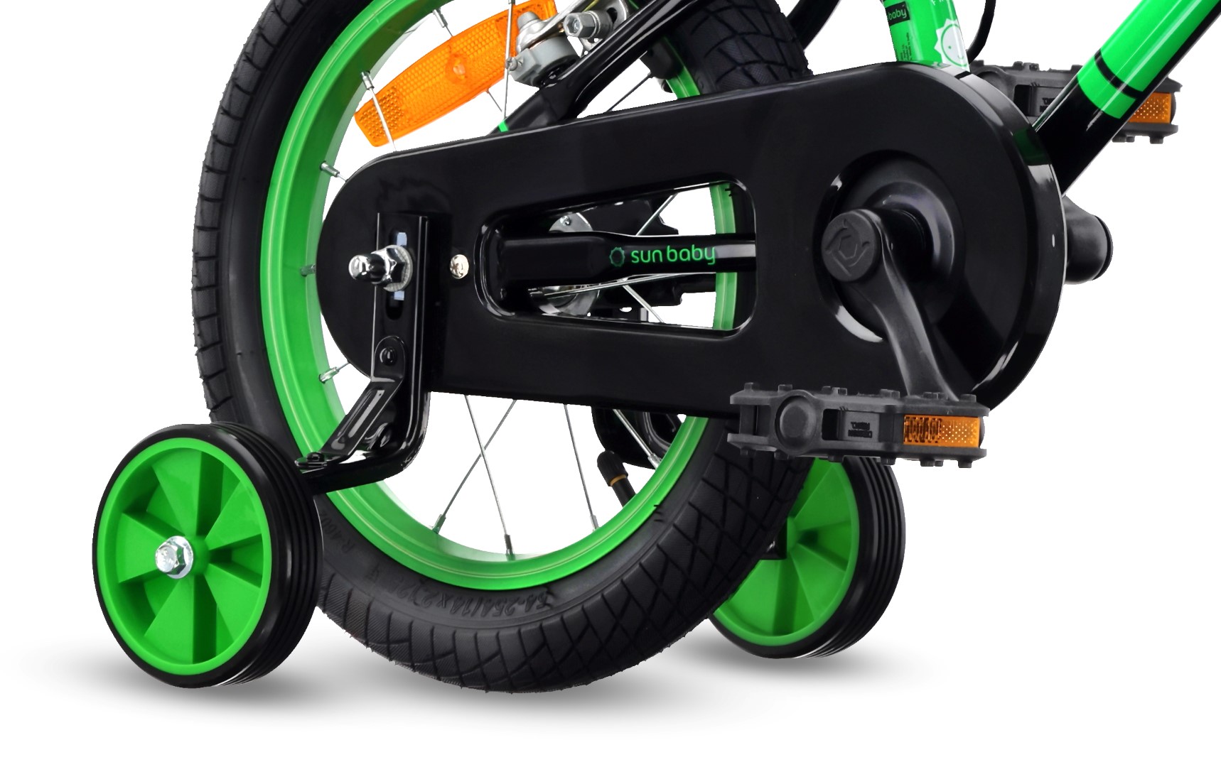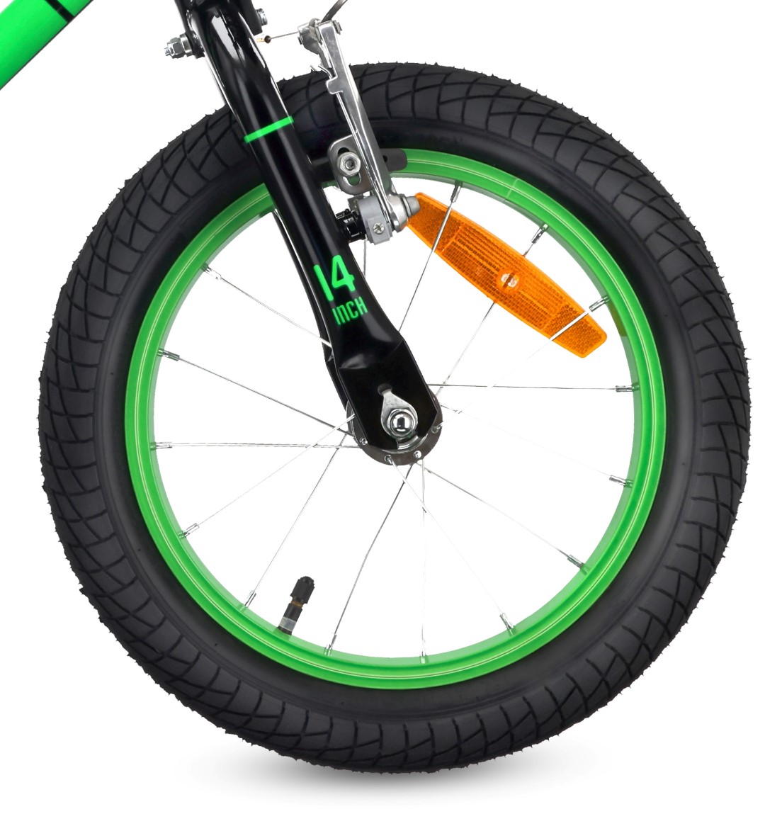 Hamulce V-brake z przodu i z tyłu zapewniają pewne i skuteczne hamowanie w każdych warunkach. Osłona łańcucha chroni ubrania dziecka, a odblaski zwiększają widoczność podczas jazdy.
