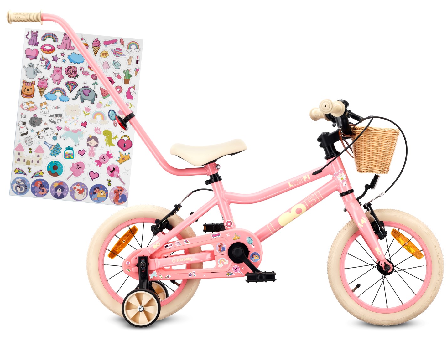 Rower dziecięcy LOOFI 14 cali został zaprojektowany z myślą o dziewczynkach w wieku 3–5 lat, które rozpoczynają naukę jazdy na dwóch kółkach. Wyposażony w kółka boczne, prowadnik oraz przedni wiklinowy koszyk, zapewnia bezpieczne i komfortowe pierwsze przejażdżki.