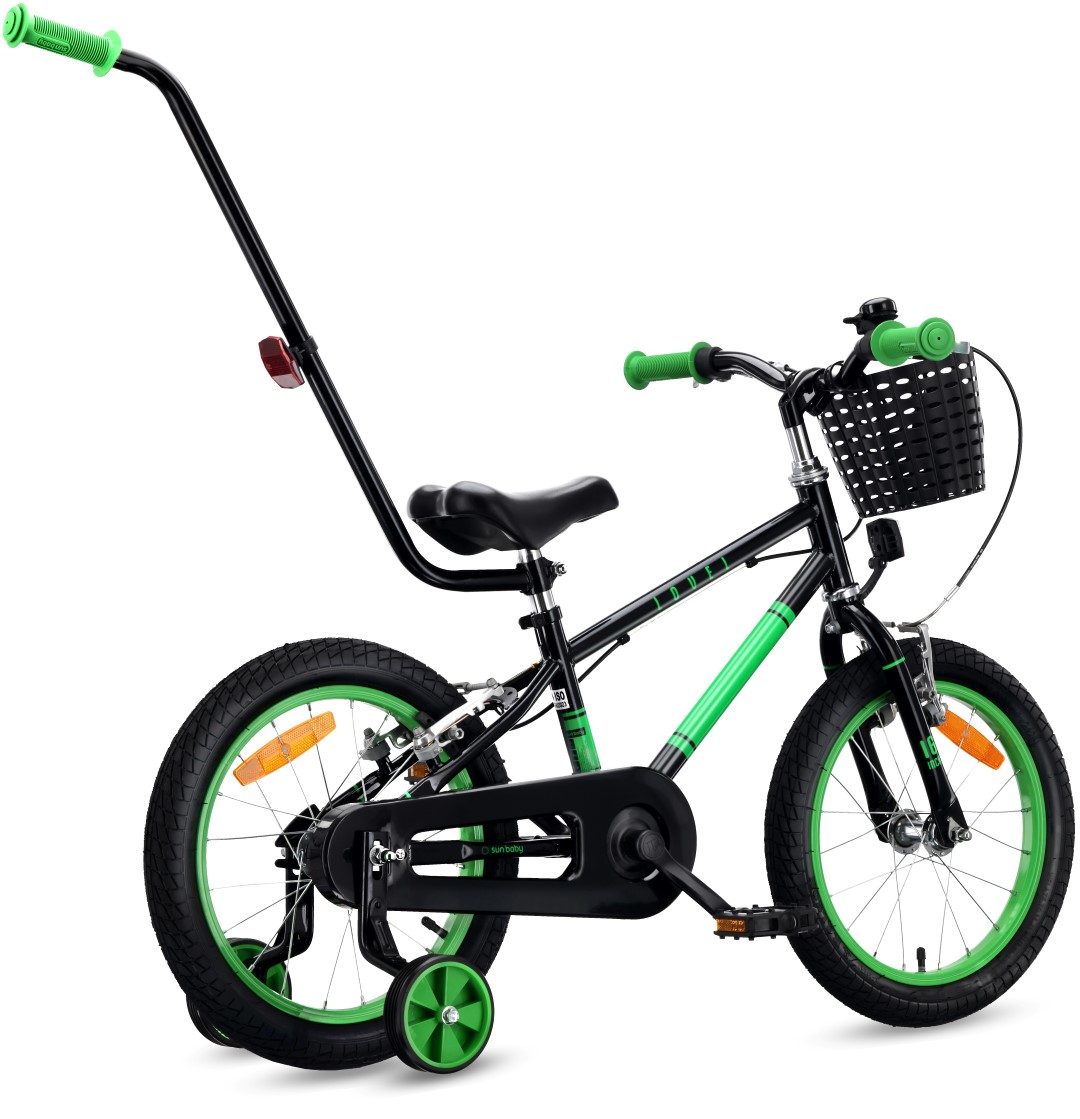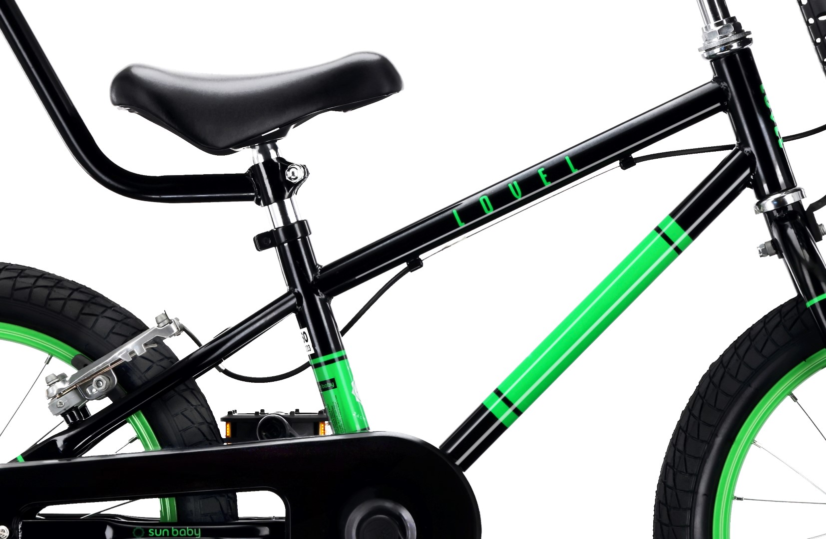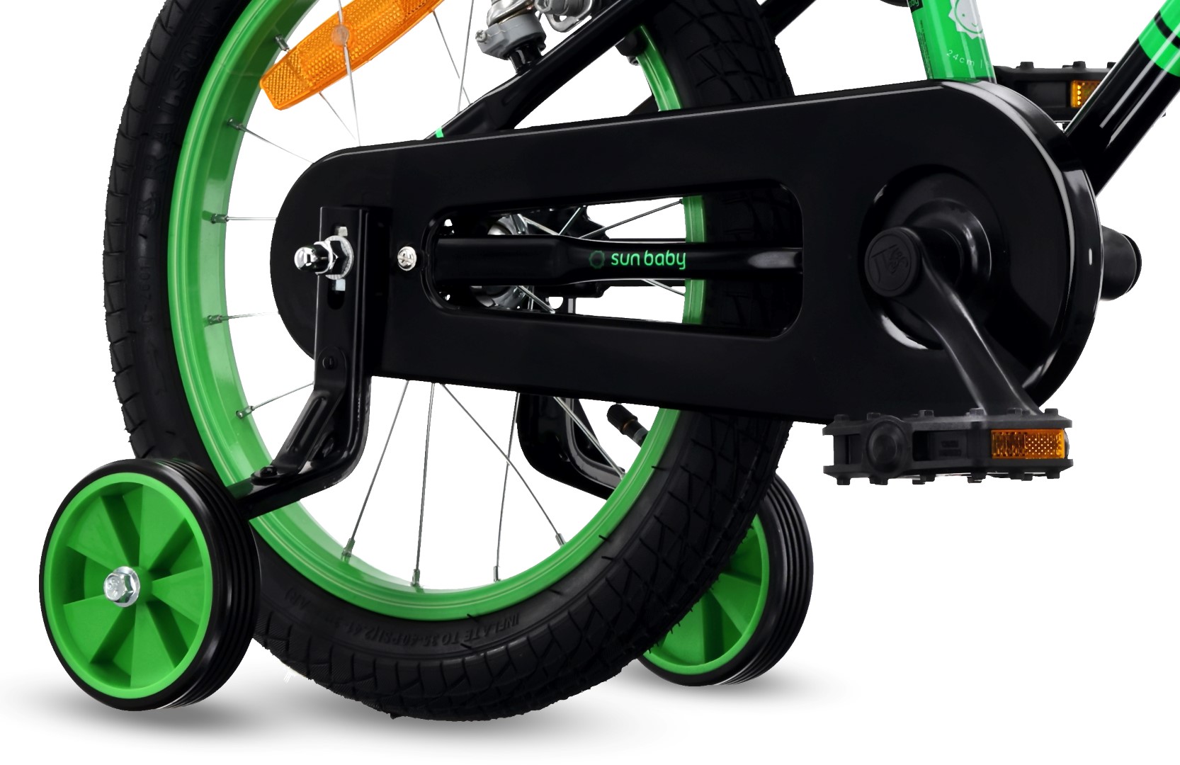 Rower dziecięcy 16 cali dla chłopca 4 5 6 lat Prowadnik Kółka boczne Koszyk V-brake LOVEL czarny zielony