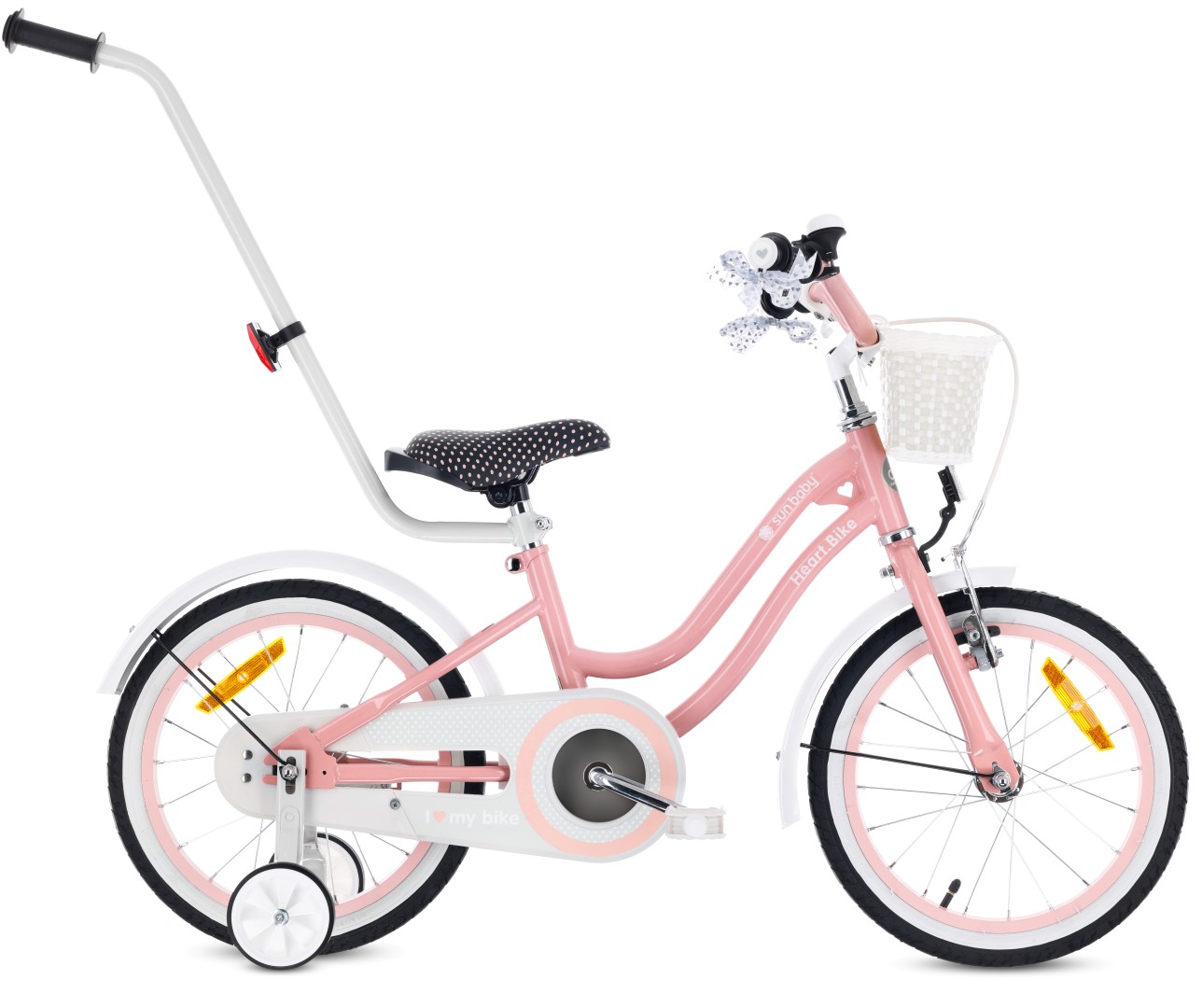 Sun Baby Rower dla dziewczynki 16 cali Pchacz kółka boczne Heart Bike różowy