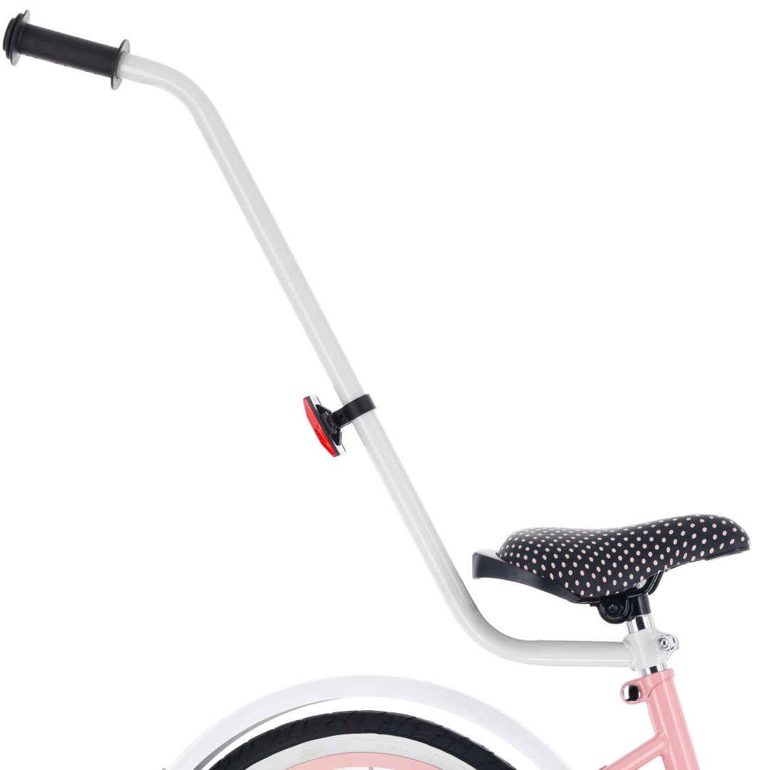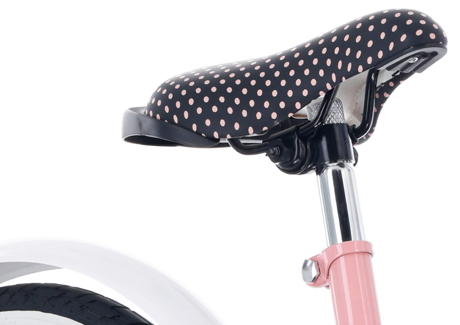 Heart Bike - rower dla dziecka z bocznymi kółkami, z pchaczem, błotnikami, koszyczkiem i dzwonkiem, z osłoną na łańcuch hamulcem nożnym i hamulce V-break w zestawie
