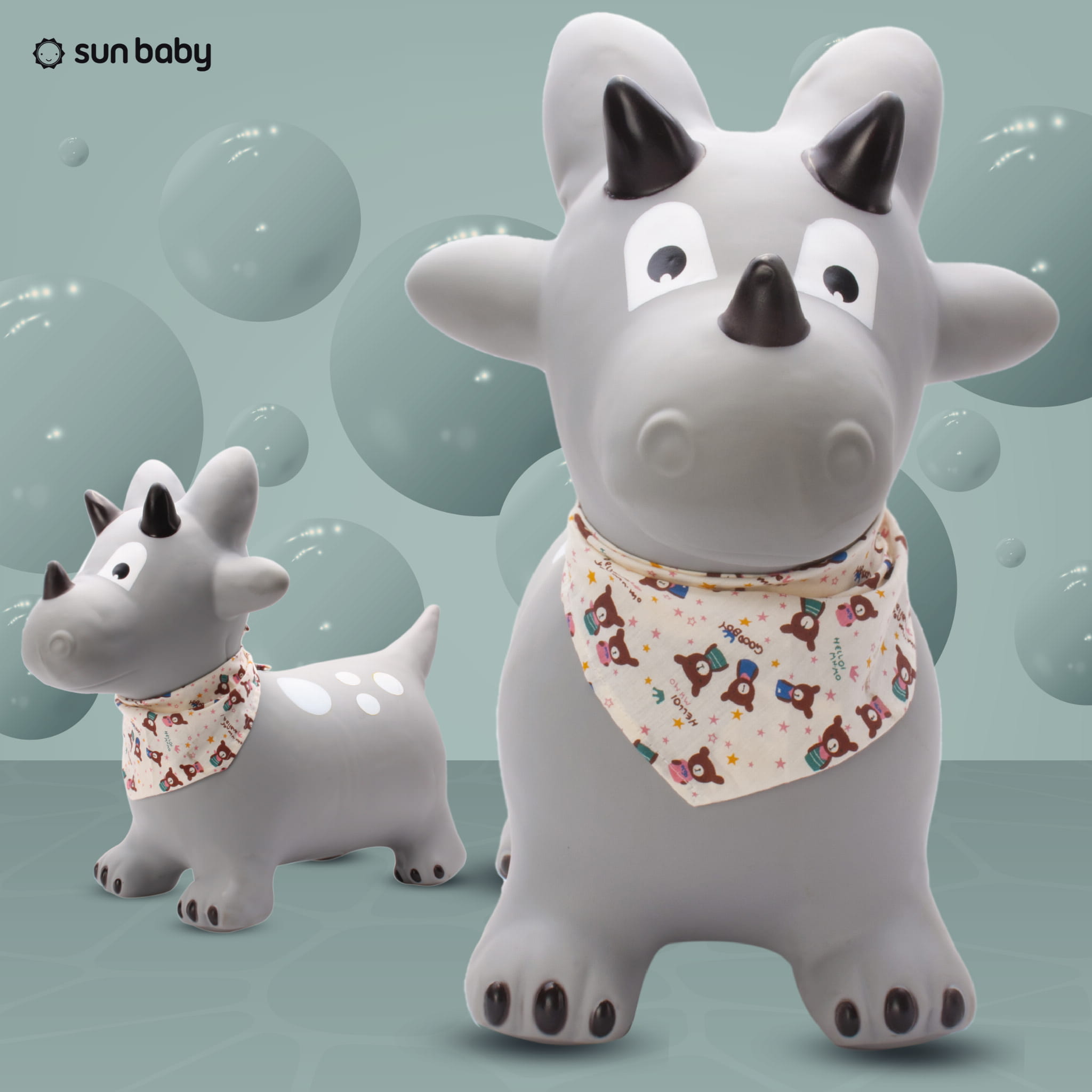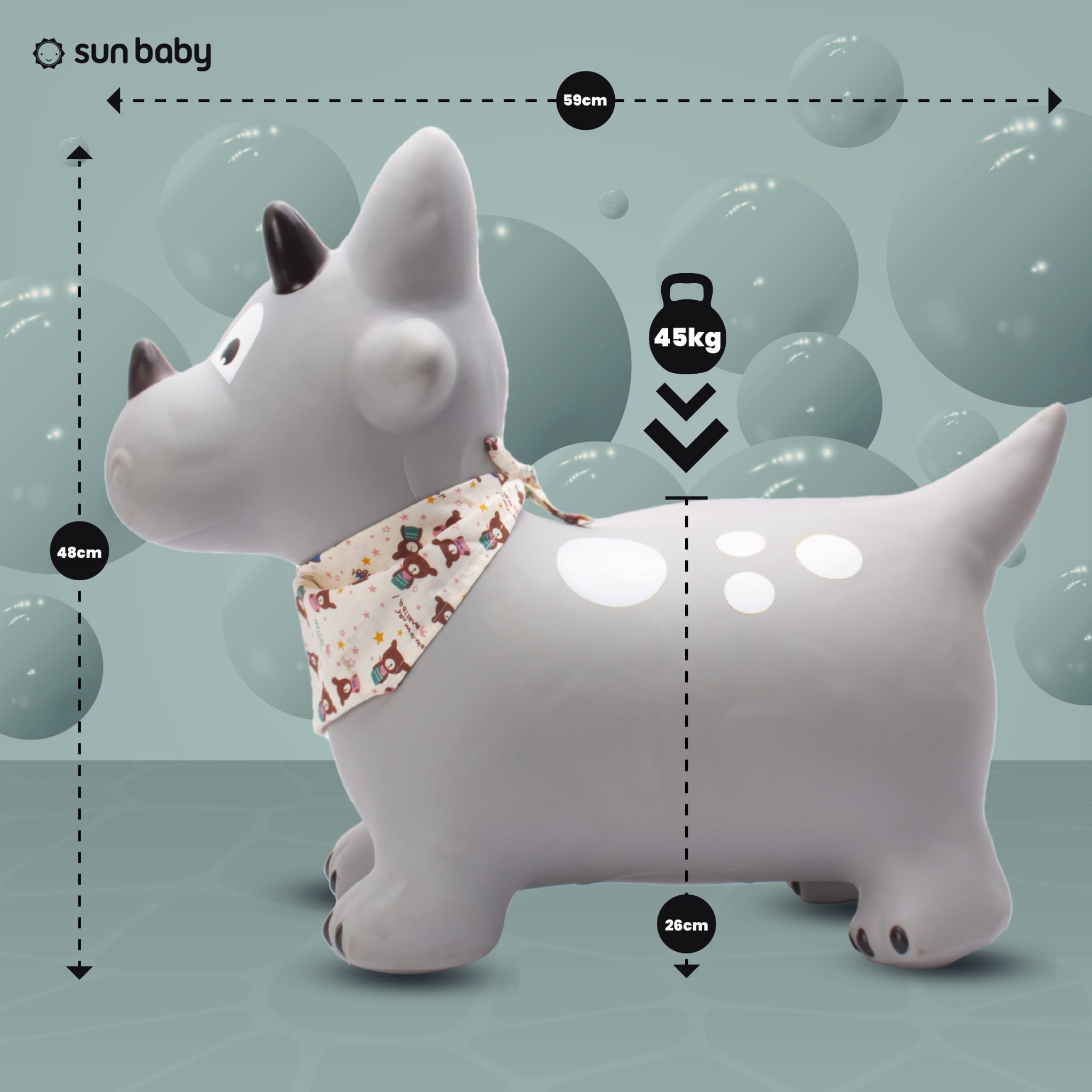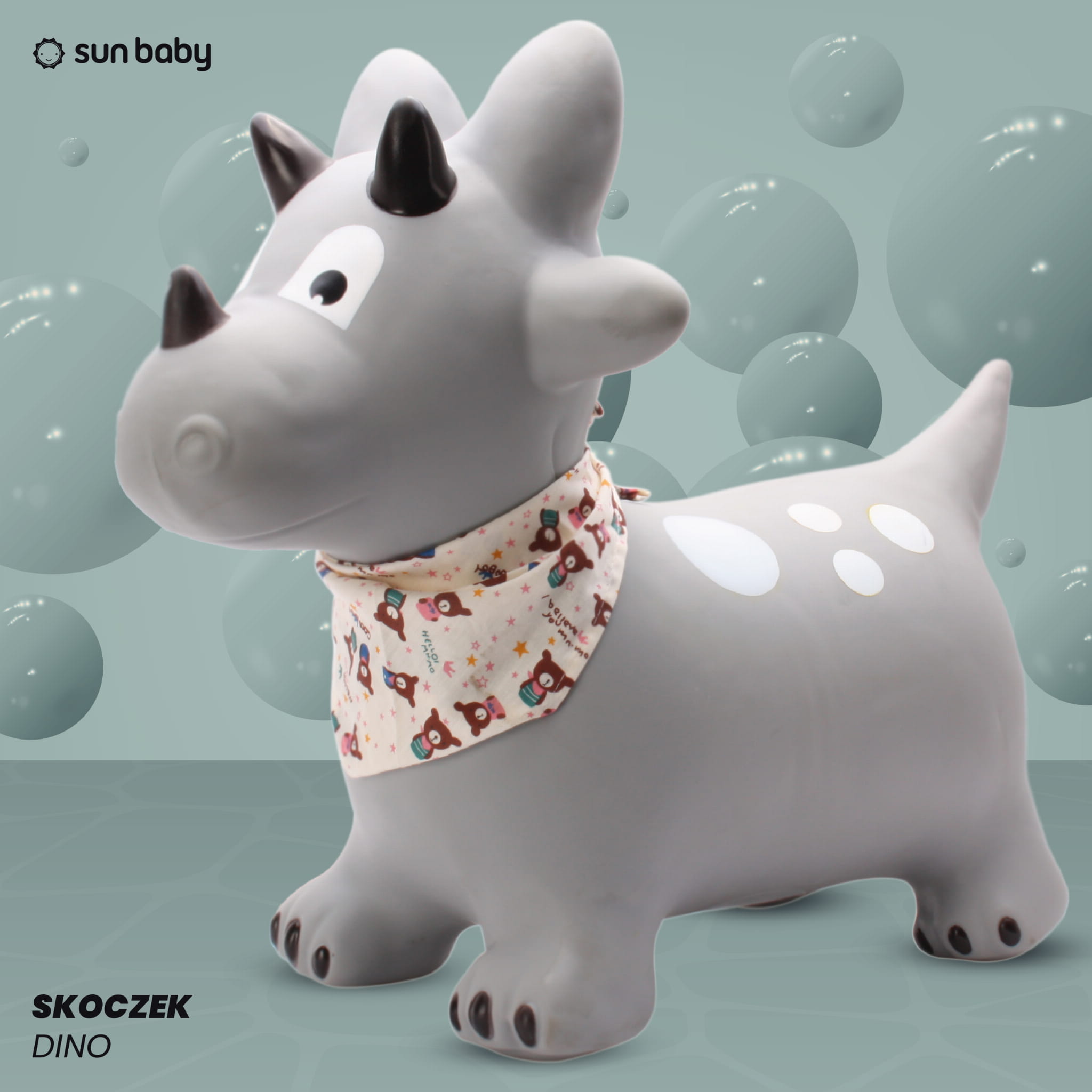 Skoczek dla dzieci do skakania z pompką DINO szary z bandaną