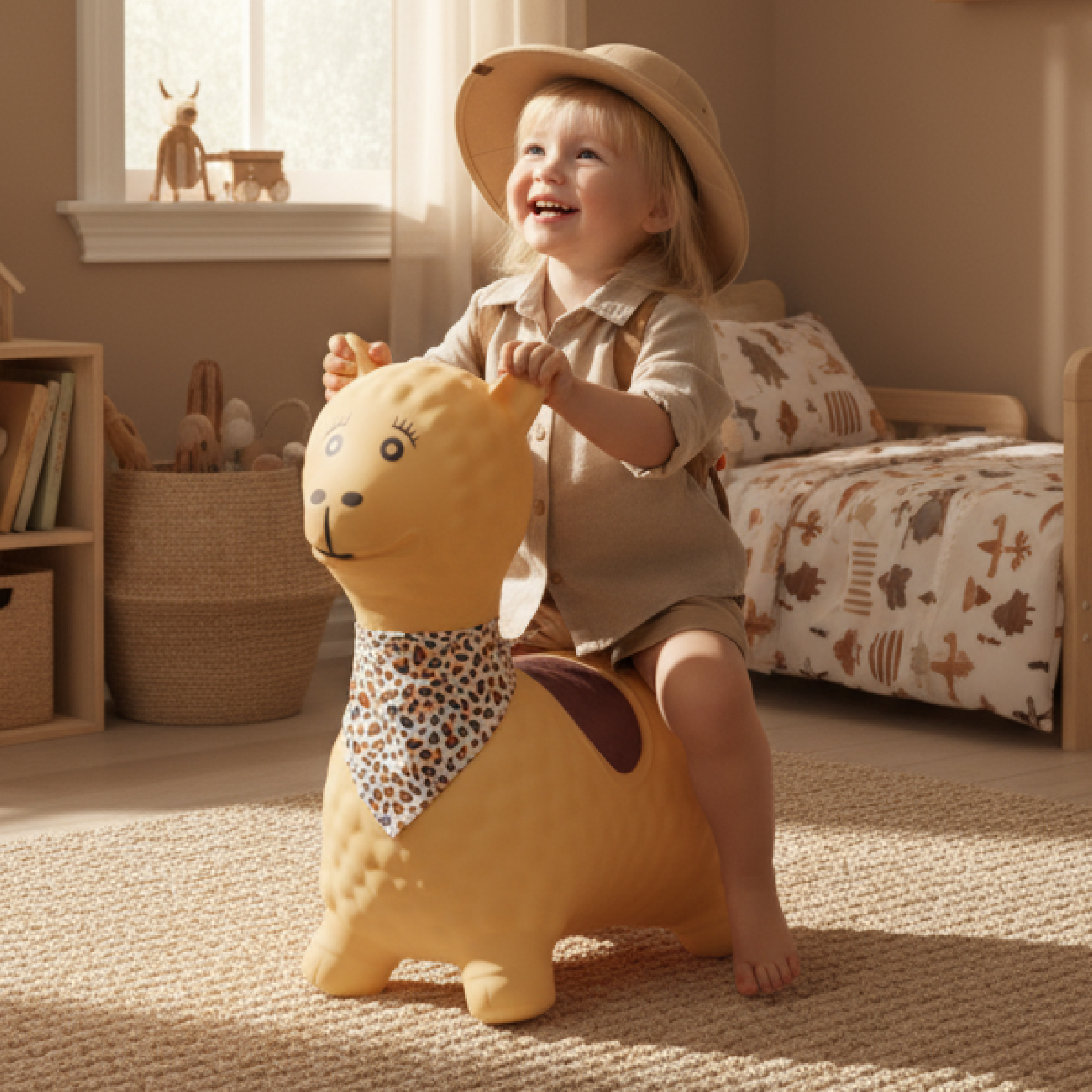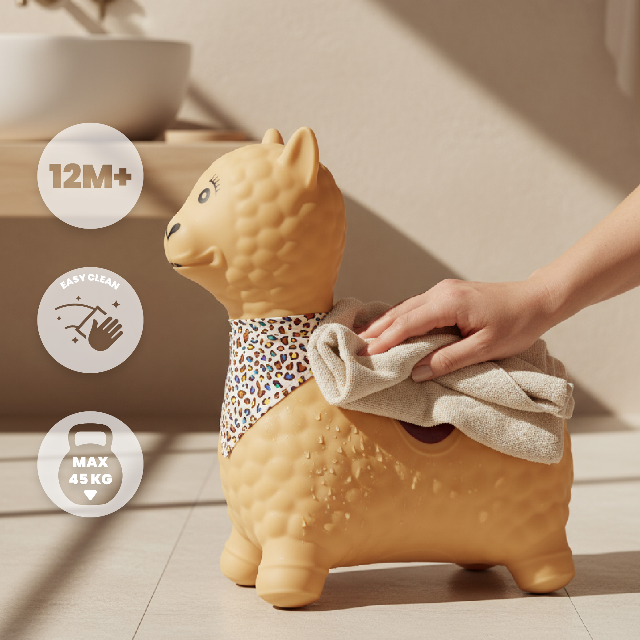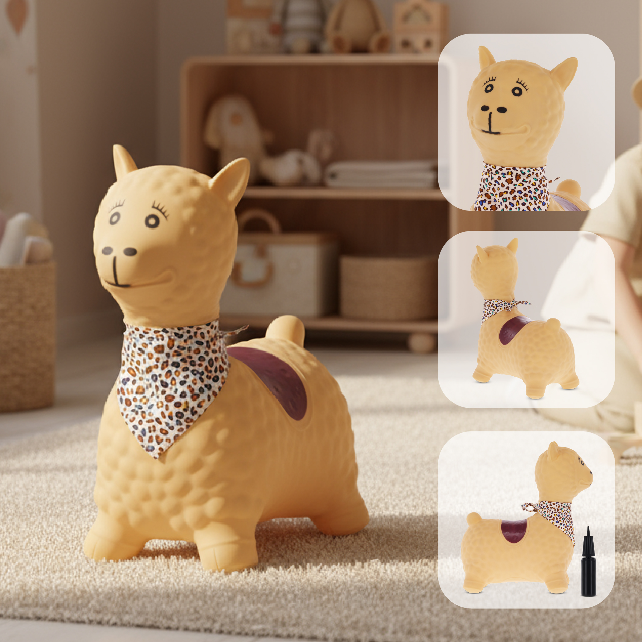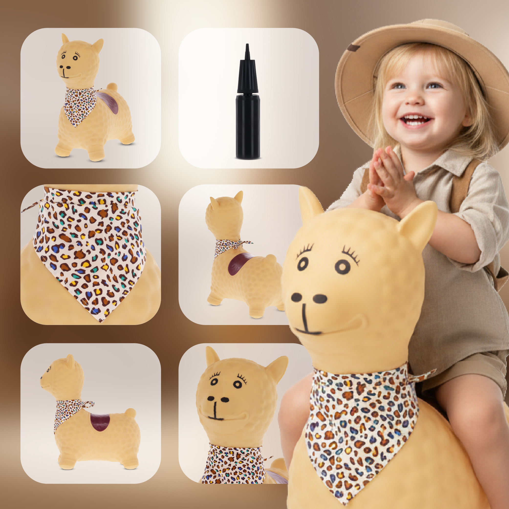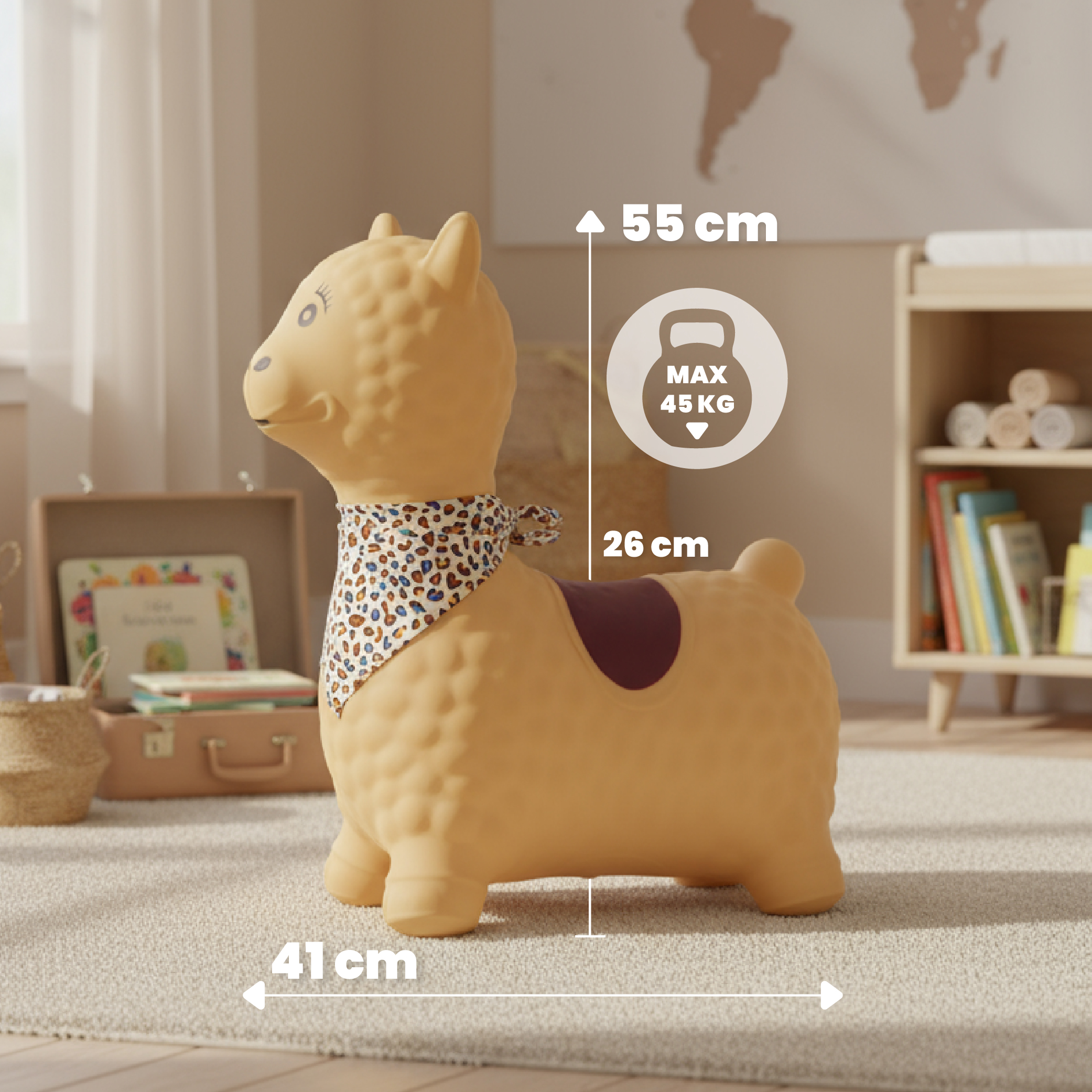 Skoczek dla dzieci do skakania z pompką ALPAKA beż z bandaną
