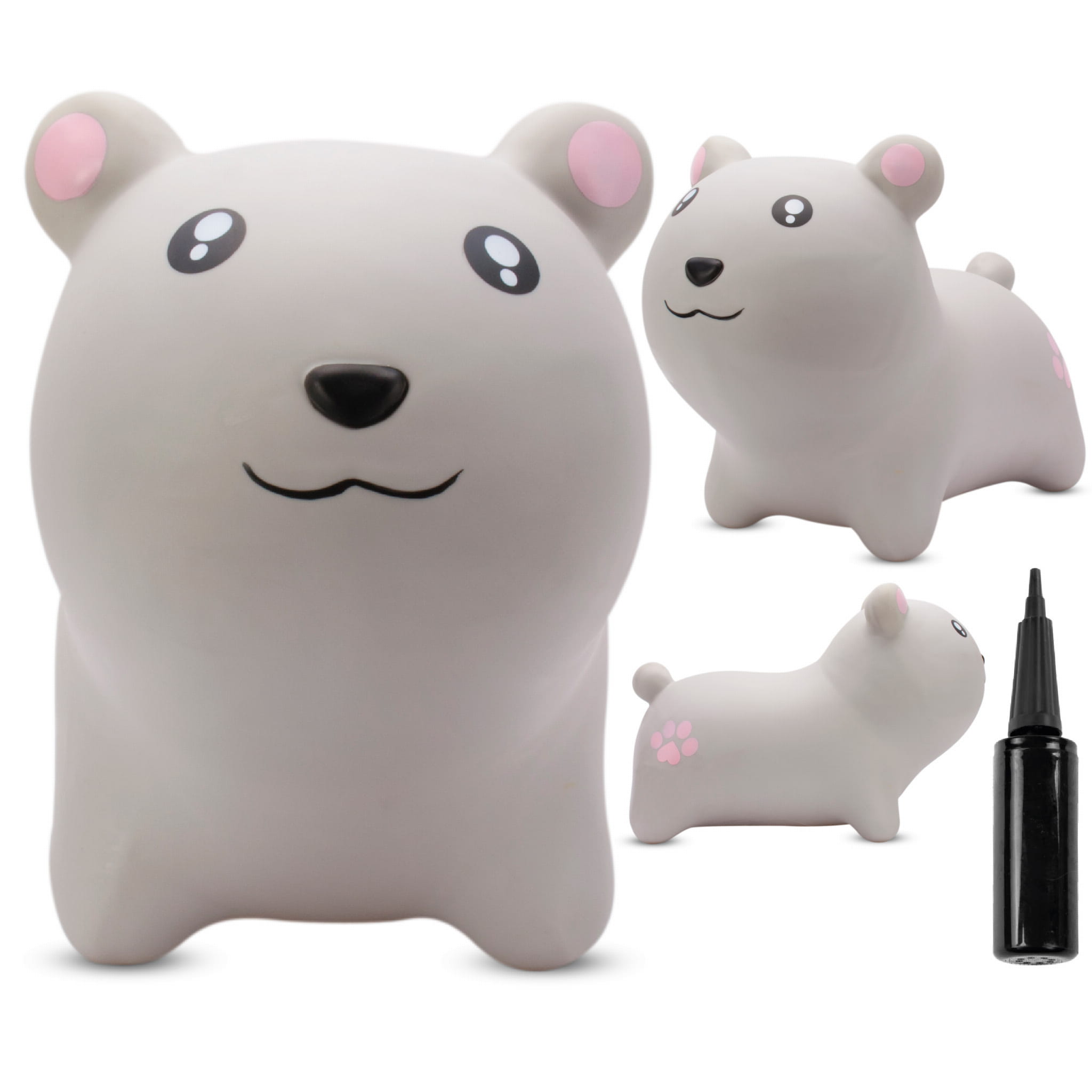 ✔️ wymiary: długość: 53 cm, szerokość maksymalna: 27 cm, wysokość (do uszu/rogów): 30 cm, wysokość do siedziska: 23 cm, szerokość siedziska: 23 cm, wysokość: 37 cm (wymiary skoczka mogą się różnić w zależności od stopnia napompowania)