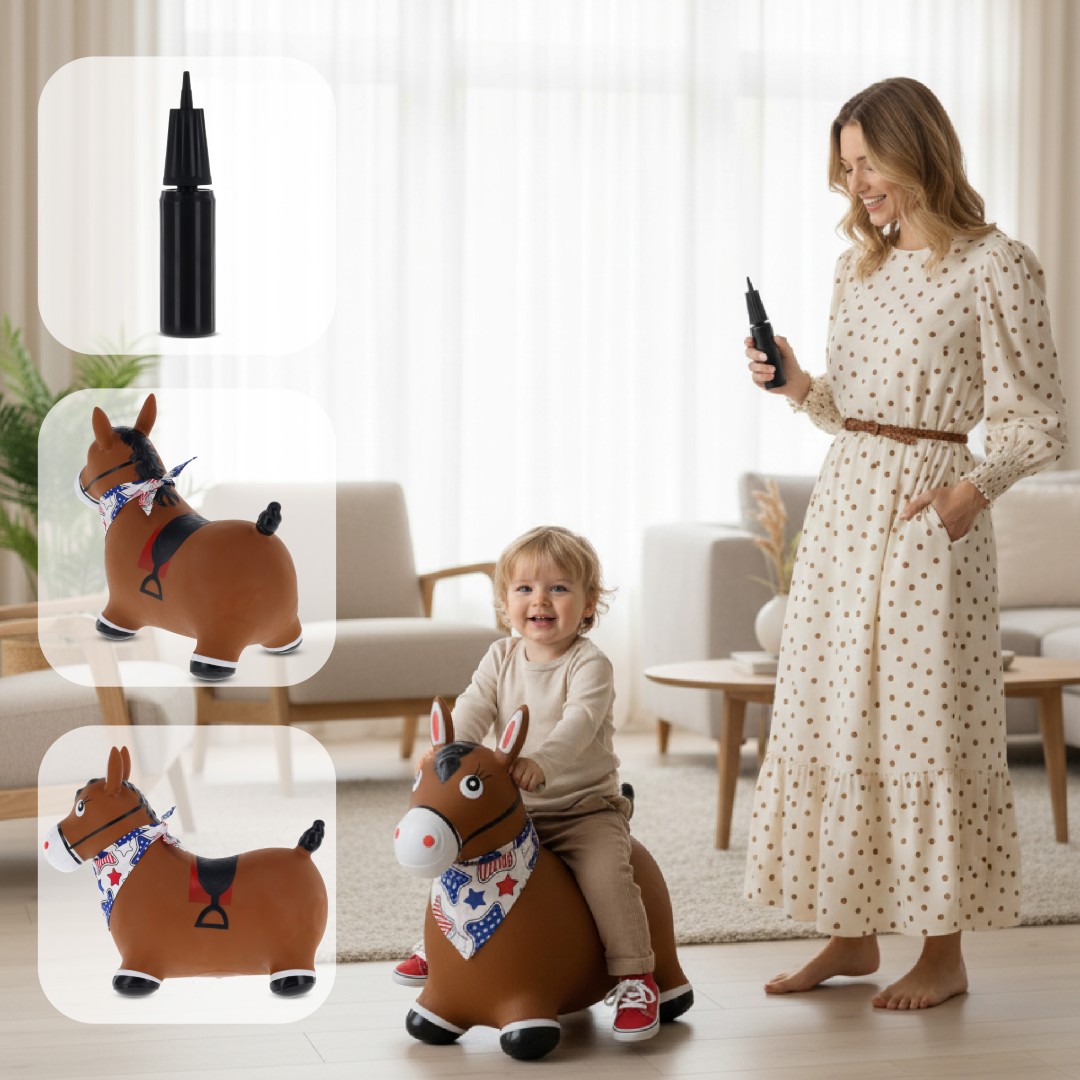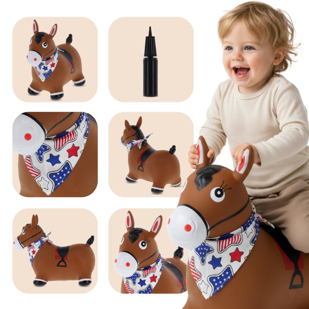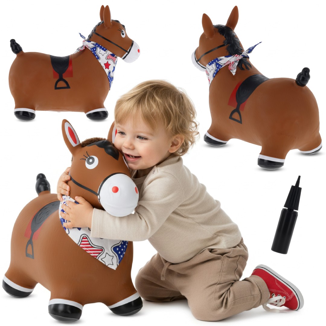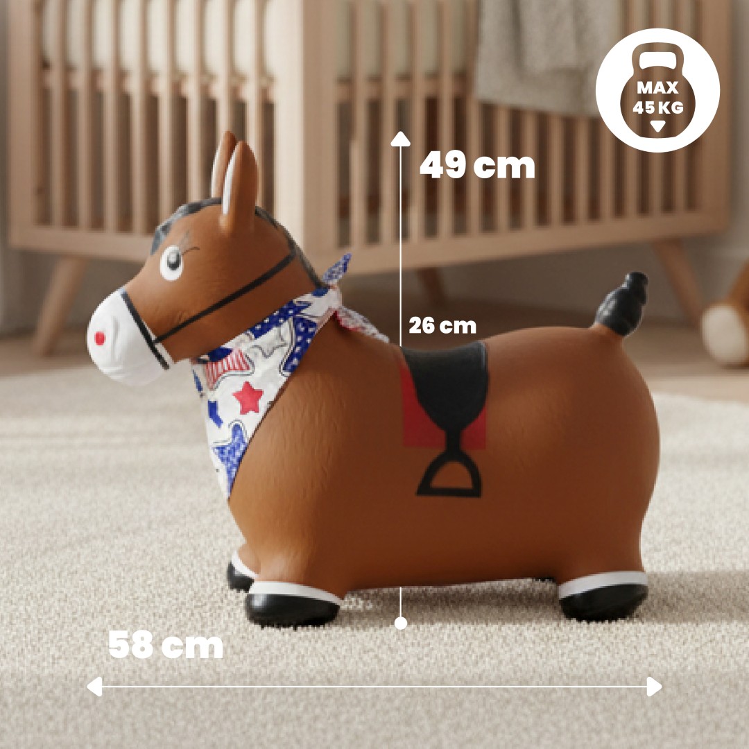 Sun Baby Skoczek dla dzieci do skakania z pompką Konik brązowy z bandaną