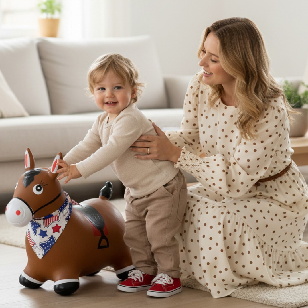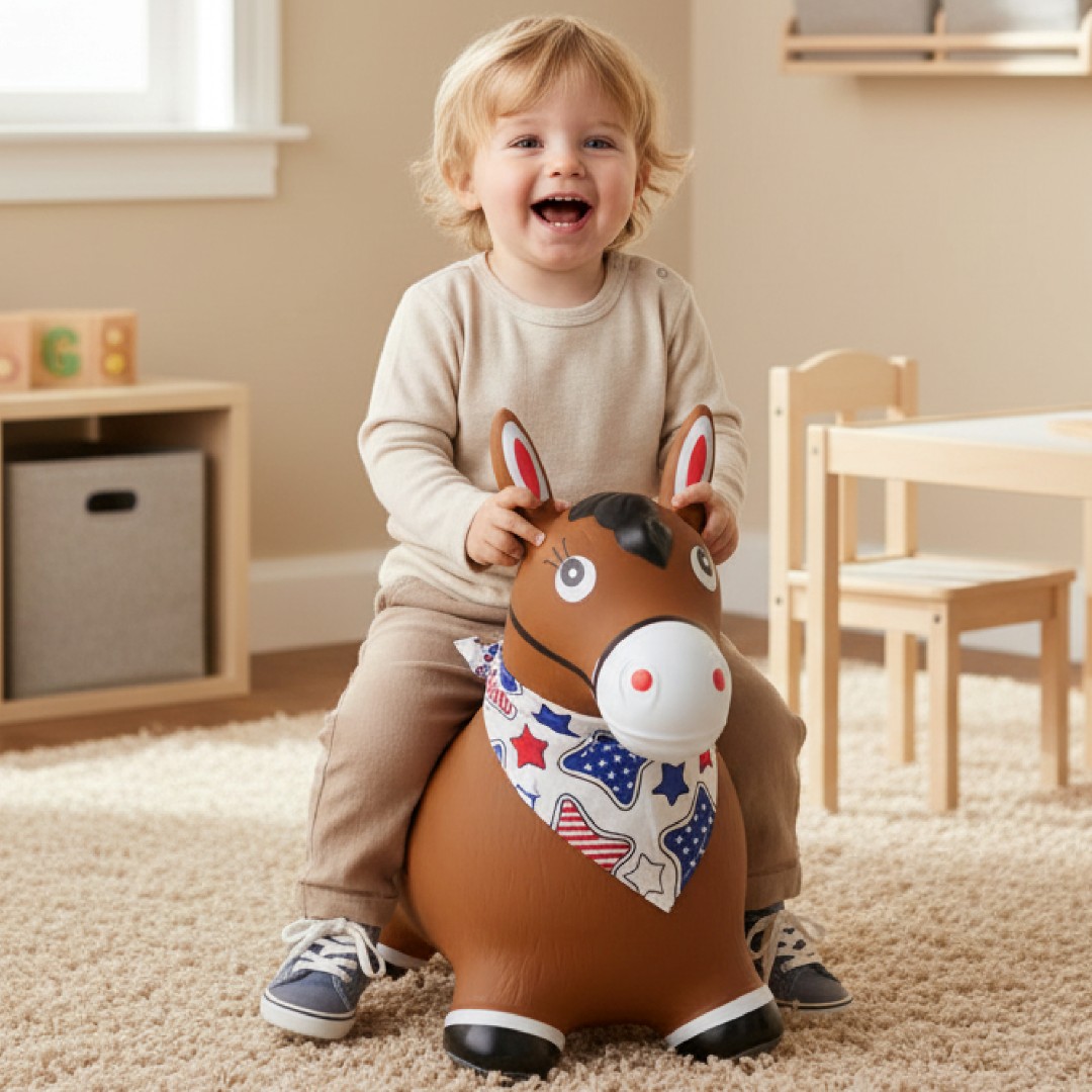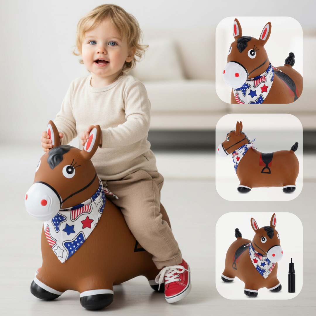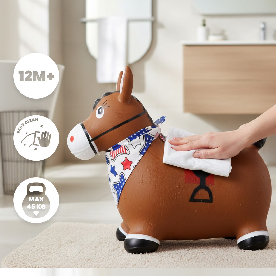 Sun Baby Skoczek dla dzieci do skakania z pompką Konik brązowy z bandaną