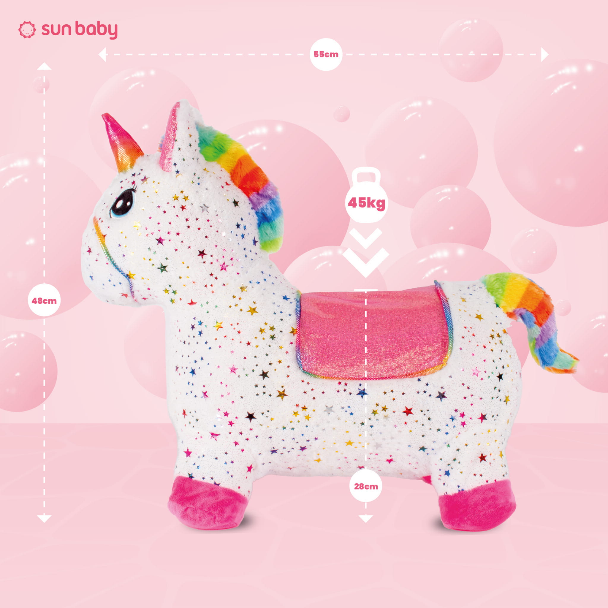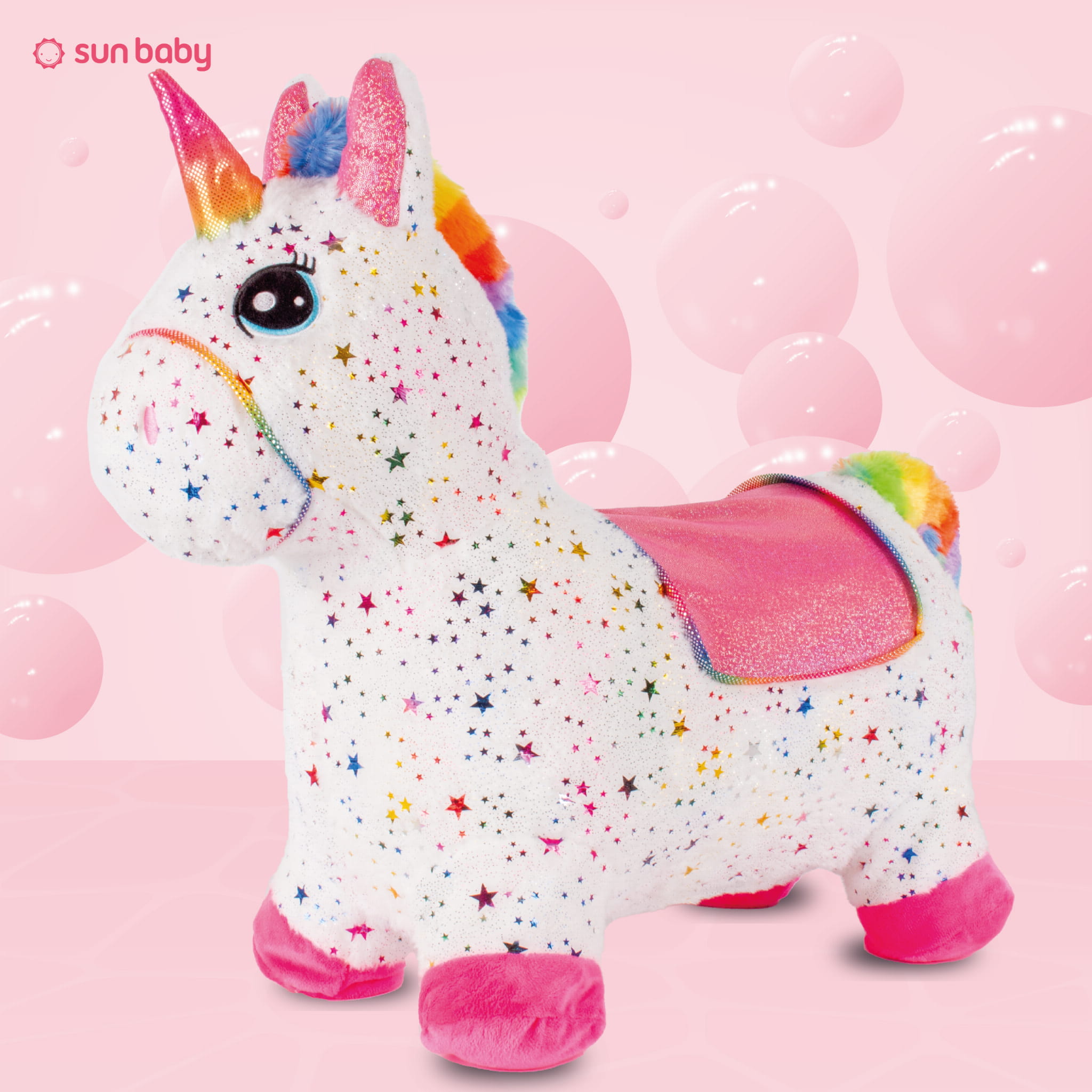Skoczek pluszowy dla dzieci do skakania Jednorożec biały w gwiazdki z pompką