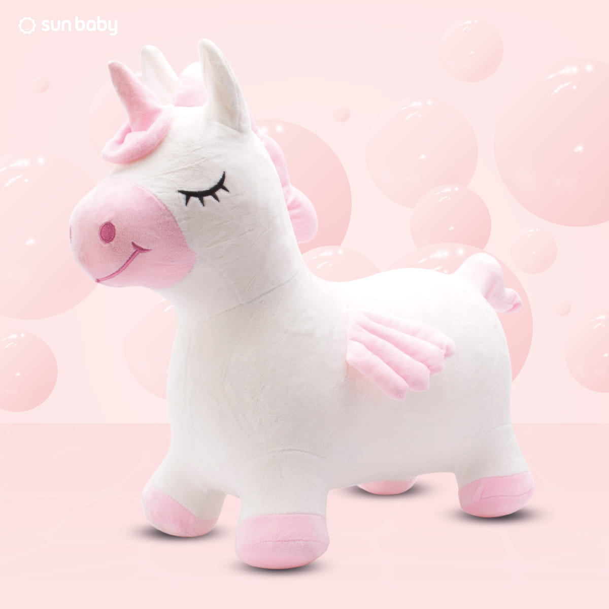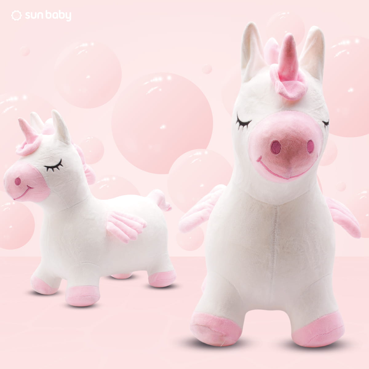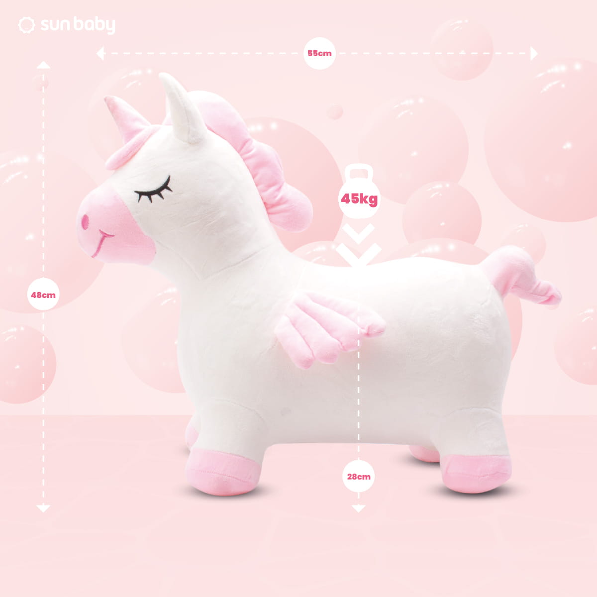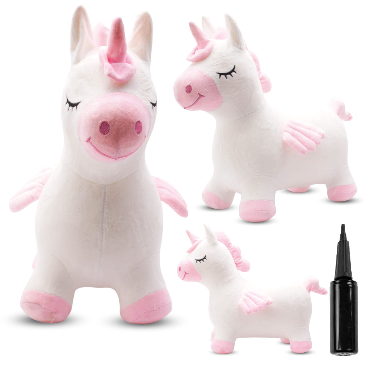 Skoczek pluszowy dla dzieci do skakania Jednorożec ze skrzydełkami biało-różowy z pompką