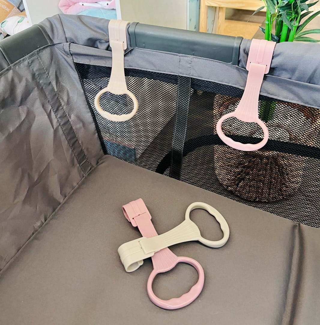 Uchwyty do nauki wstawania to praktyczny produkt, który wspiera proces samodzielnego wstawania dziecka. Uchwyty są łatwe w montażu i mogą być przymocowane do górnej krawędzi łóżeczka lub kojca, co umożliwia dziecku pewny chwyt podczas wstawania. W zestawie znajdują się cztery uchwyty, co zapewnia ich równomierne rozmieszczenie na łóżeczku. Uchwyty pasują do łóżeczek turystycznych i kojców, co czyni je wszechstronnym narzędziem do nauki samodzielnego wstawania dla dzieci w wieku niemowlęcym.